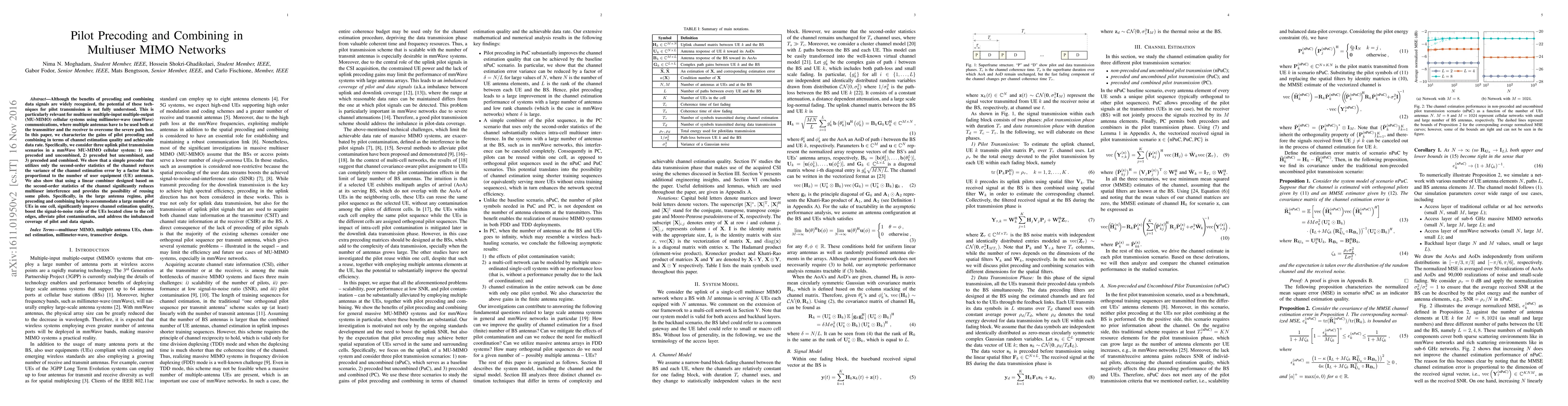 This paper investigates the benefits of pilot precoding and combining in multiuser MIMO networks, showing that these techniques improve channel estimation quality and data rate, particularly in millimeter-wave MU-MIMO systems.