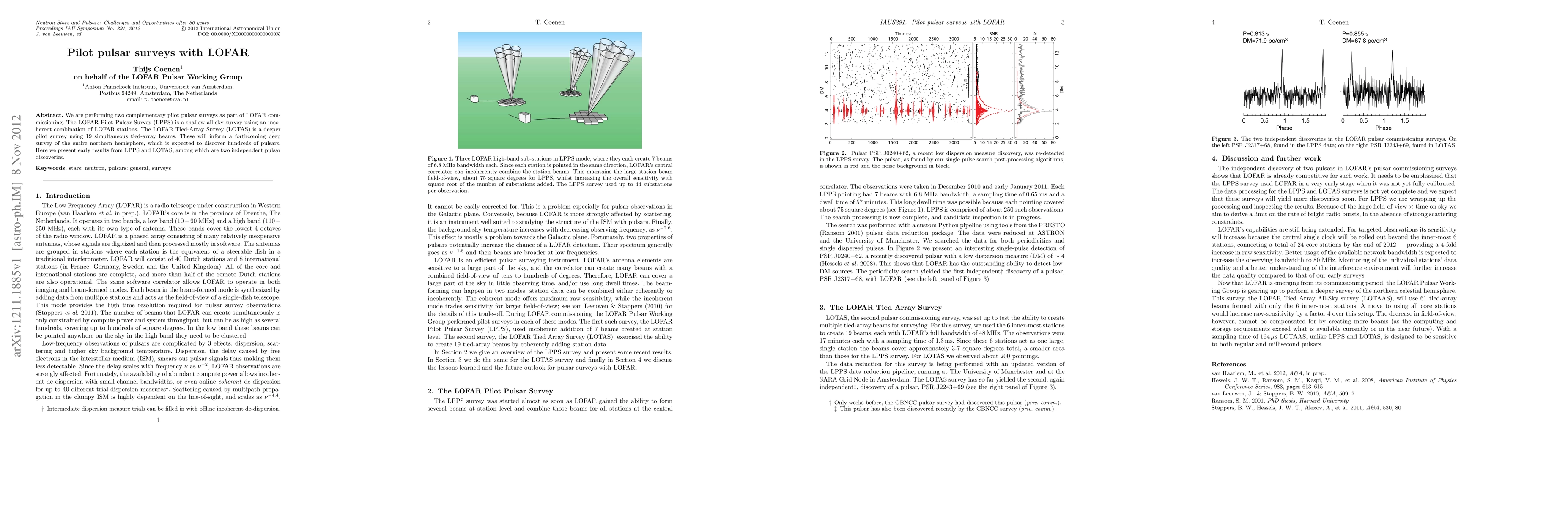 This paper reports on two pilot pulsar surveys conducted with LOFAR, including the shallow LOFAR Pilot Pulsar Survey (LPPS) and the deeper LOFAR Tied-Array Survey (LOTAS). The surveys aim to inform a future comprehensive northern hemisphere pulsar survey, with early results including the discovery of two independent pulsars.