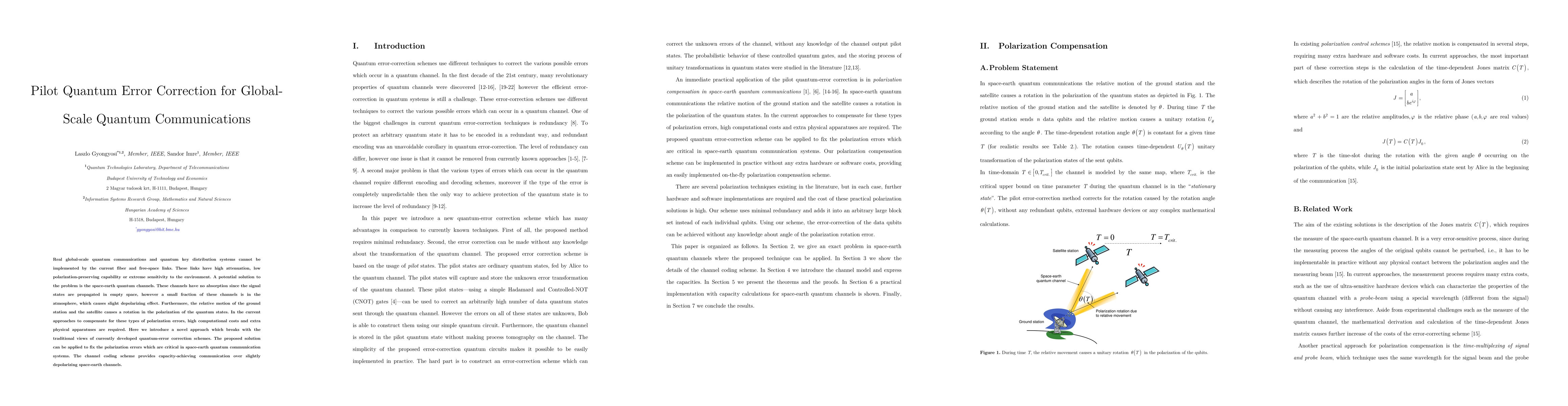 Real global-scale quantum communications and quantum key distribution systems cannot be implemented by the current fiber and free-space links. These links have high attenuation, low polarization-preserving capability or extreme sensitivity to the environment. A potential solution to the problem is the space-earth quantum channels. These channels have no absorption since the signal states are propagated in empty space, however a small fraction of these channels is in the atmosphere, which causes slight depolarizing effect. Furthermore, the relative motion of the ground station and the satellite causes a rotation in the polarization of the quantum states. In the current approaches to compensate for these types of polarization errors, high computational costs and extra physical apparatuses are required. Here we introduce a novel approach which breaks with the traditional views of currently developed quantum-error correction schemes. The proposed quantum error-correction technique can be applied to fix the polarization errors which are critical in space-earth quantum communication systems. Moreover, the channel coding scheme provides capacity-achieving communication over slightly depolarizing space-earth channels.
