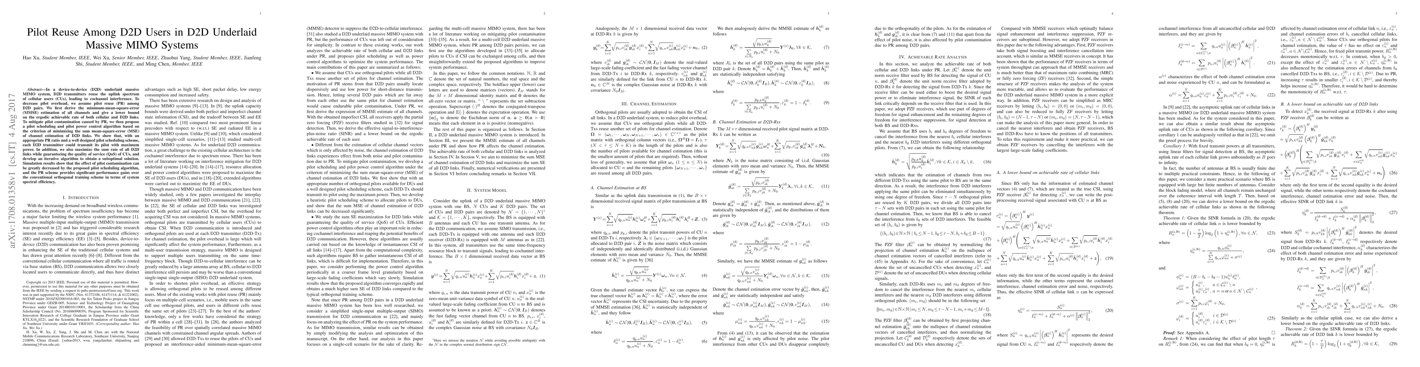 This paper investigates pilot reuse among D2D pairs in D2D underlaid massive MIMO systems to mitigate cochannel interference and reduce pilot overhead. It proposes a pilot scheduling and power control algorithm to optimize the sum rate of D2D links while maintaining cellular user QoS, demonstrating significant spectral efficiency gains over orthogonal training.