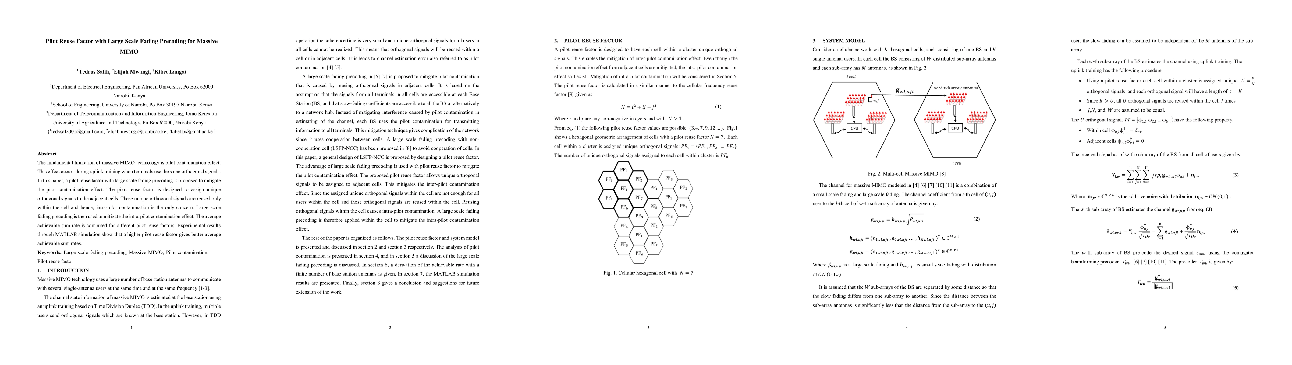 This paper proposes a pilot reuse factor with large scale fading precoding to mitigate pilot contamination in massive MIMO systems. The method assigns unique orthogonal signals to adjacent cells, limiting intra-pilot contamination and employing large scale fading precoding to further reduce its effects, with simulations showing improved average achievable sum rates with higher pilot reuse factors.