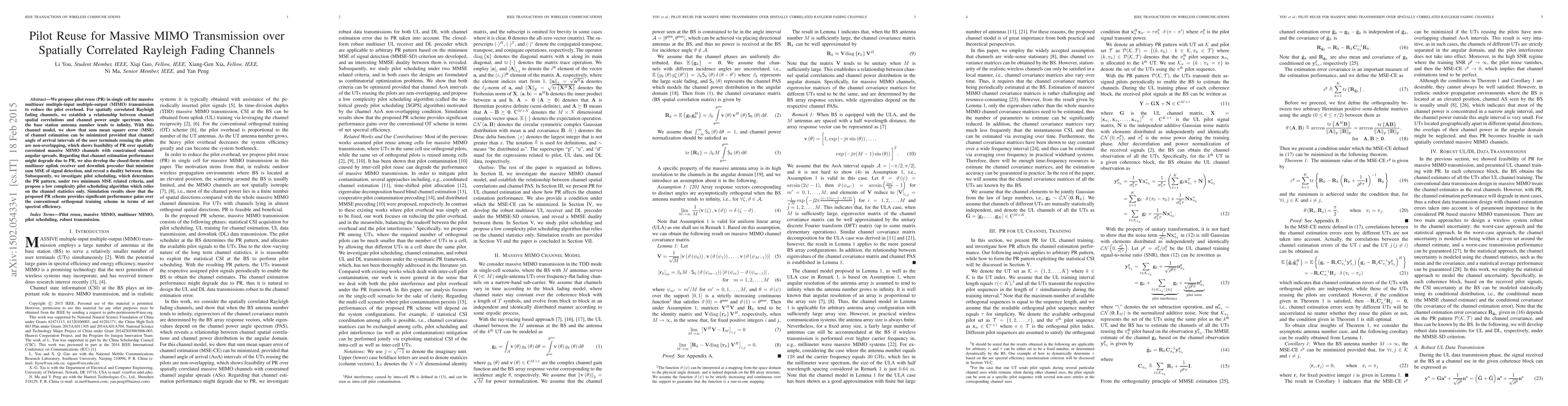 This paper proposes a pilot reuse strategy for massive MIMO systems to reduce pilot overhead, demonstrating that sum mean square error can be minimized when user terminals' channel angle of arrival intervals do not overlap. It also develops robust receivers and precoders to maintain performance and proposes a low complexity pilot scheduling algorithm, showing significant gains in spectral efficiency compared to orthogonal training schemes.