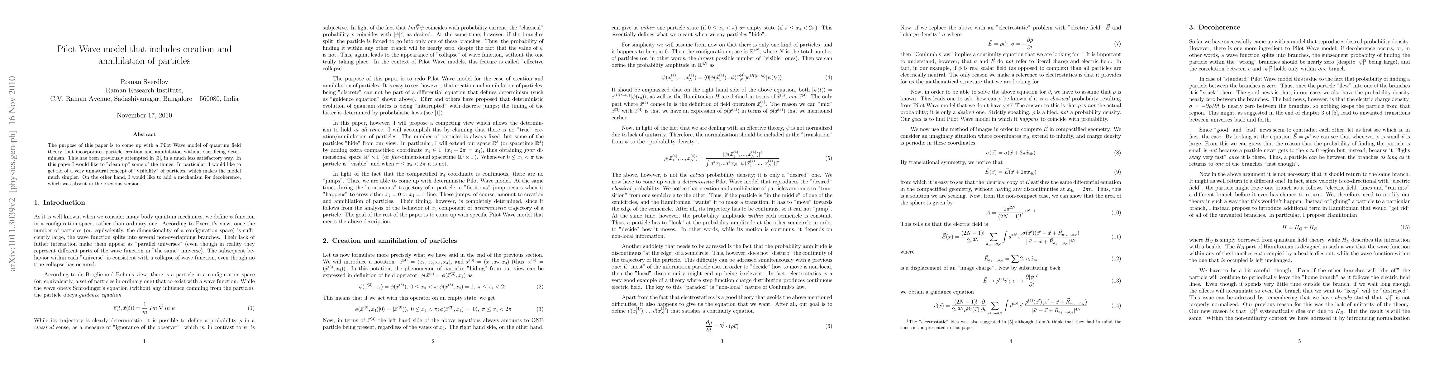 The purpose of this paper is to come up with a Pilot Wave model of quantum field theory that incorporates particle creation and annihilation without sacrificing determinism. This has been previously attempted in an article by the same author titled "Incorporating particle creation and annihilation in Pilot Wave model", in a much less satisfactory way. In this paper I would like to "clean up" some of the things. In particular, I would like to get rid of a very unnatural concept of "visibility" of particles, which makes the model much simpler. On the other hand, I would like to add a mechanism for decoherence, which was absent in the previous version.