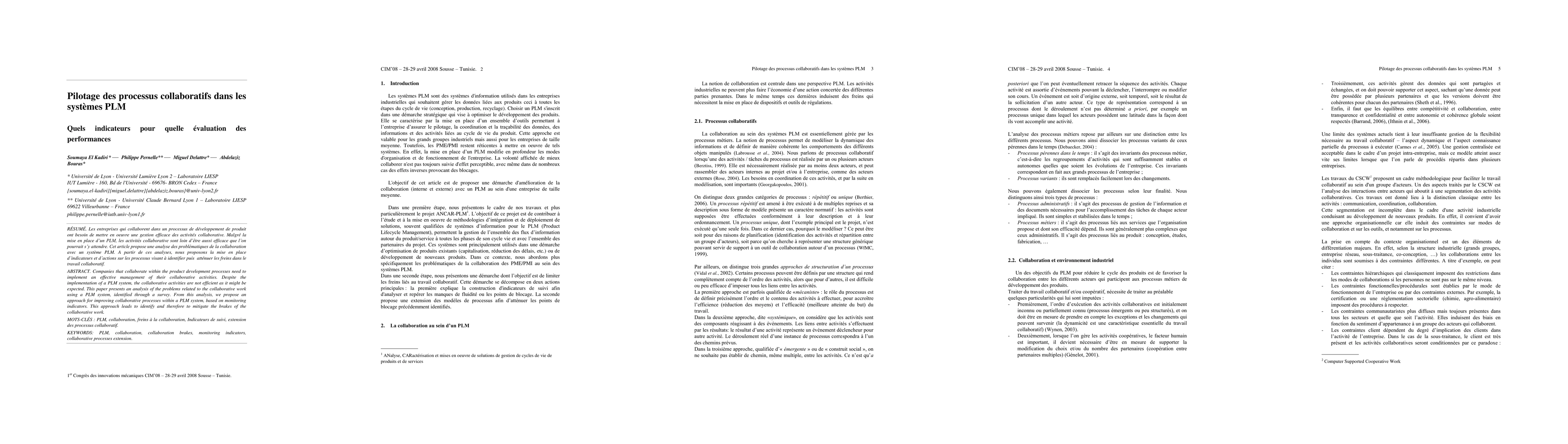 Les entreprises qui collaborent dans un processus de d\'eveloppement de produit ont besoin de mettre en oeuvre une gestion efficace des activit\'es collaborative. Malgr\'e la mise en place d'un PLM, les activit\'es collaborative sont loin d'\^etre aussi efficace que l'on pourrait s'y attendre. Cet article propose une analyse des probl\'ematiques de la collaboration avec un syst\`eme PLM. A partir de ces analyses, nous proposons la mise en place d'indicateurs et d'actions sur les processus visant \`a identifier puis att\'enuer les freins dans le travail collaboratif. ----- Companies that collaborate within the product development processes need to implement an effective management of their collaborative activities. Despite the implementation of a PLM system, the collaborative activities are not efficient as it might be expected. This paper presents an analysis of the problems related to the collaborative work using a PLM system, identified through a survey. From this analysis, we propose an approach for improving collaborative processes within a PLM system, based on monitoring indicators. This approach leads to identify and therefore to mitigate the brakes of the collaborative work.