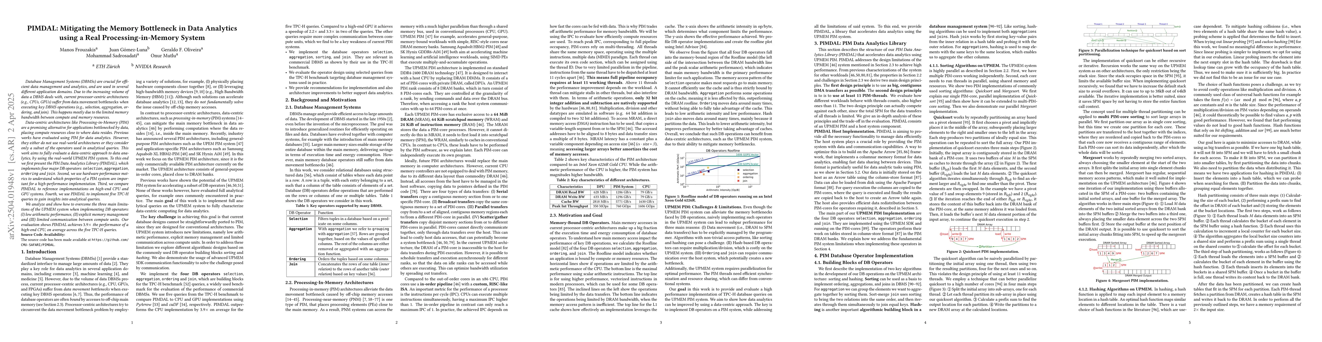 The PIM Data Analytics Library (PIMDAL) that implements four major DB operators (selection, aggregation, ordering, and join) for a real PIM system, along with strategies to address its limitations.