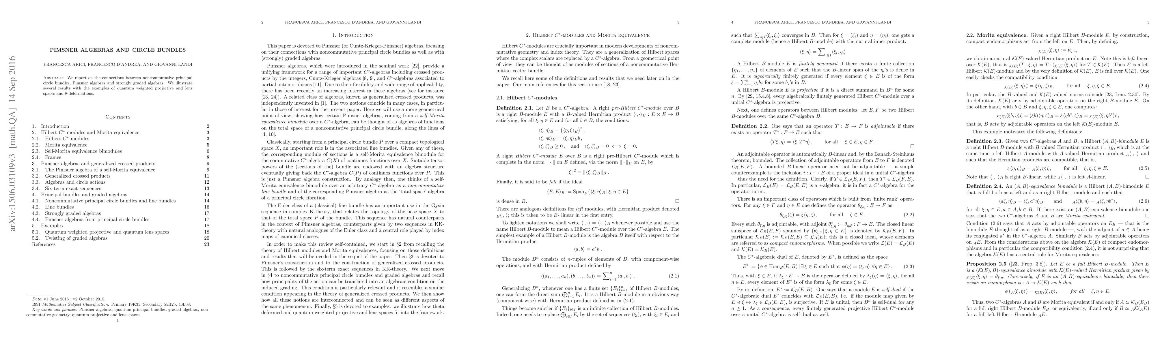 This paper explores the relationships between noncommutative principal circle bundles, Pimsner algebras, and strongly graded algebras. It uses examples like quantum weighted projective and lens spaces to illustrate these connections and theorize about theta-deformations.