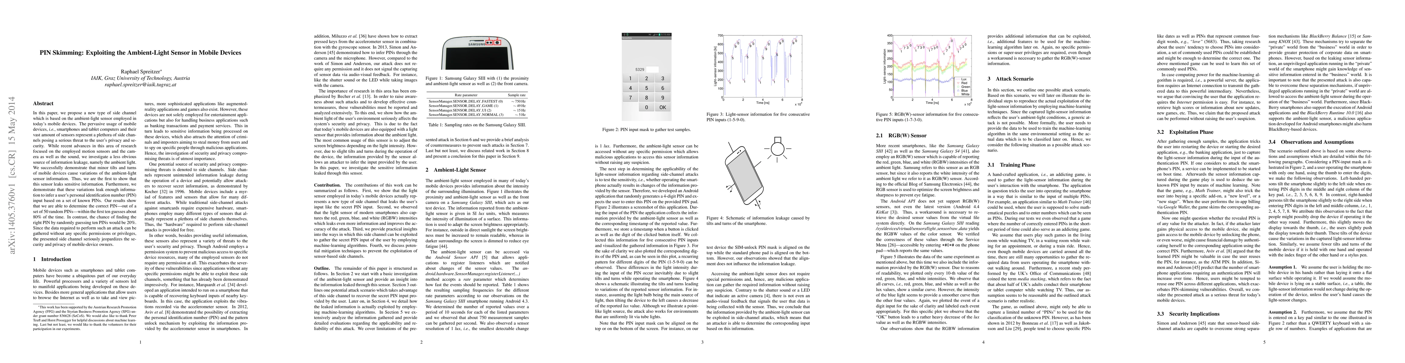 Researchers discovered that mobile devices' ambient-light sensors can leak sensitive information when tilted or turned, allowing attackers to guess a user's PIN 80% of the time in just 10 attempts.