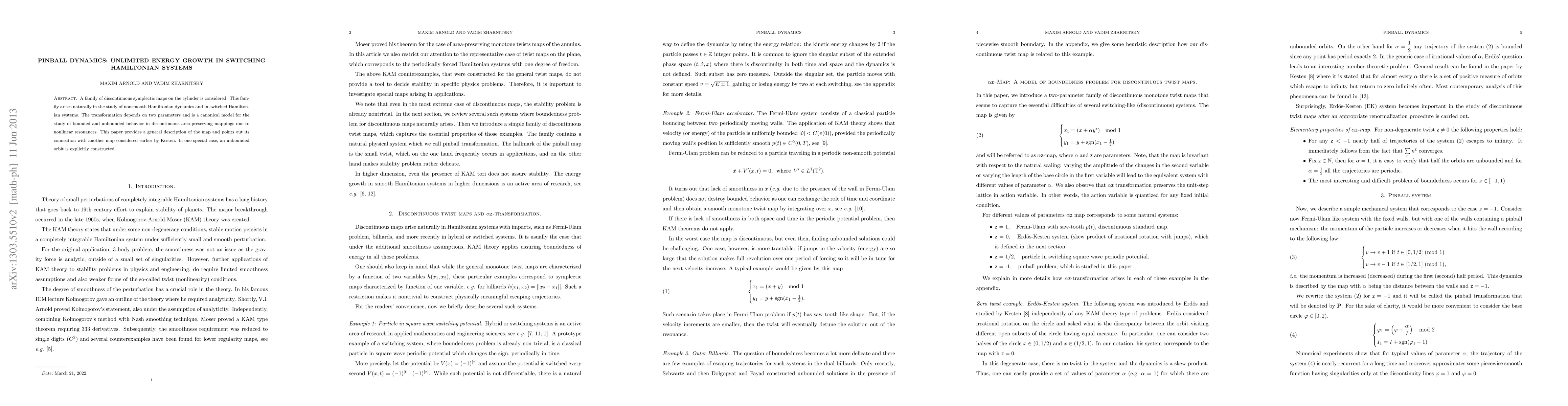 A family of discontinuous symplectic maps on the cylinder is considered. This family arises naturally in the study of nonsmooth Hamiltonian dynamics and in switched Hamiltonian systems. The transformation depends on two parameters and is a canonical model for the study of bounded and unbounded behavior in discontinuous area-preserving mappings due to nonlinear resonances. This paper provides a general description of the map and points out its connection with another map considered earlier by Kesten. In one special case, an unbounded orbit is explicitly constructed.