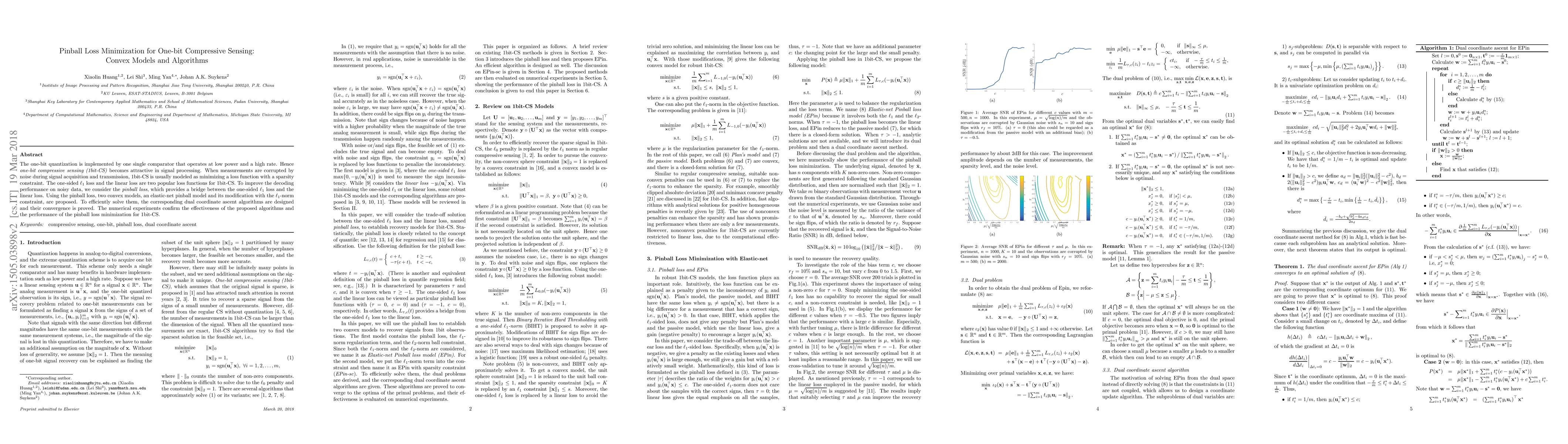 Researchers propose using pinball loss to improve one-bit compressive sensing (1bit-CS) performance on noisy data, offering a bridge between popular loss functions and developing efficient convex models and algorithms for optimization.