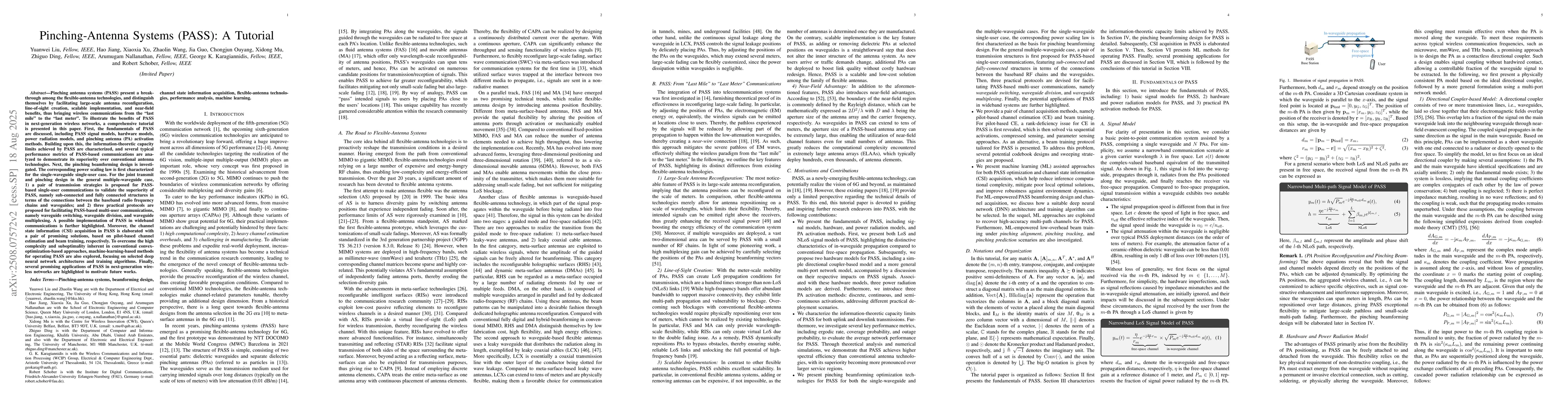 Pinching antenna systems (PASS) present a breakthrough among the flexible-antenna technologies, and distinguish themselves by facilitating large-scale antenna reconfiguration, line-of-sight creation, scalable implementation, and near-field benefits, thus bringing wireless communications from the last mile to the last meter. A comprehensive tutorial is presented in this paper. First, the fundamentals of PASS are discussed, including PASS signal models, hardware models, power radiation models, and pinching antenna activation methods. Building upon this, the information-theoretic capacity limits achieved by PASS are characterized, and several typical performance metrics of PASS-based communications are analyzed to demonstrate its superiority over conventional antenna technologies. Next, the pinching beamforming design is investigated. The corresponding power scaling law is first characterized. For the joint transmit and pinching design in the general multiple-waveguide case, 1) a pair of transmission strategies is proposed for PASS-based single-user communications to validate the superiority of PASS, namely sub-connected and fully connected structures; and 2) three practical protocols are proposed for facilitating PASS-based multi-user communications, namely waveguide switching, waveguide division, and waveguide multiplexing. A possible implementation of PASS in wideband communications is further highlighted. Moreover, the channel state information acquisition in PASS is elaborated with a pair of promising solutions. To overcome the high complexity and suboptimality inherent in conventional convex-optimization-based approaches, machine-learning-based methods for operating PASS are also explored, focusing on selected deep neural network architectures and training algorithms. Finally, several promising applications of PASS in next-generation wireless networks are highlighted.