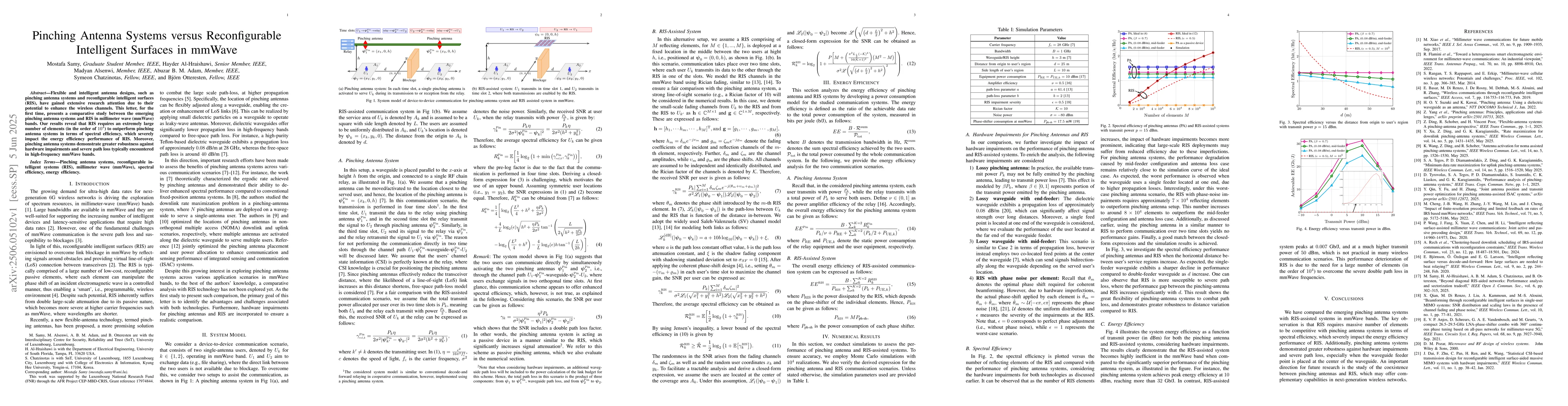 Comparative study between pinching antenna systems and reconfigurable intelligent surfaces (RIS) in mmWave bands.