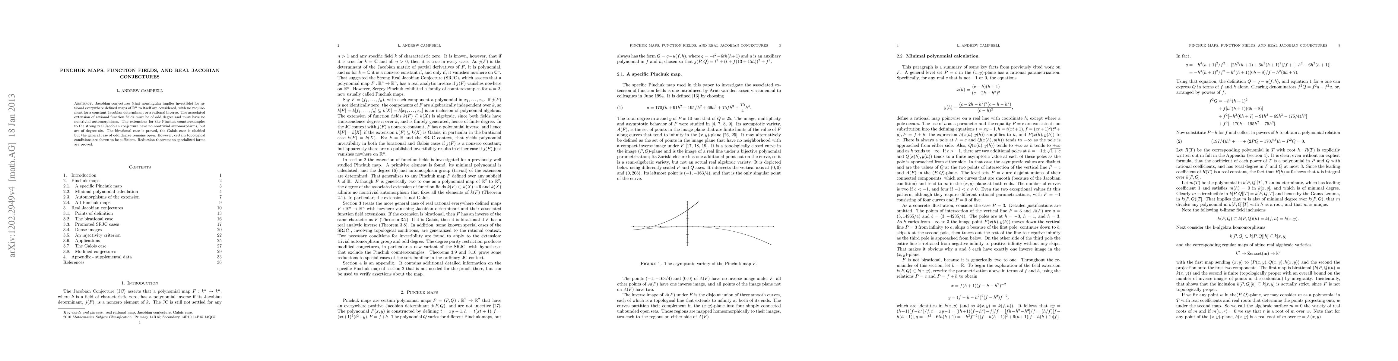 Jacobian conjectures (that nonsingular implies invertible) for rational everywhere defined maps of real n-space to itself are considered, with no requirement for a constant Jacobian determinant or a rational inverse. The associated extension of rational function fields must be of odd degree and must have no nontrivial automorphisms. The extensions for the Pinchuk counterexamples to the strong real Jacobian conjecture have no nontrivial automorphisms, but are of degree six. The birational case is proved, the Galois case is clarified but the general case of odd degree remains open. However, certain topological conditions are shown to be sufficient. Reduction theorems to specialized forms are proved.