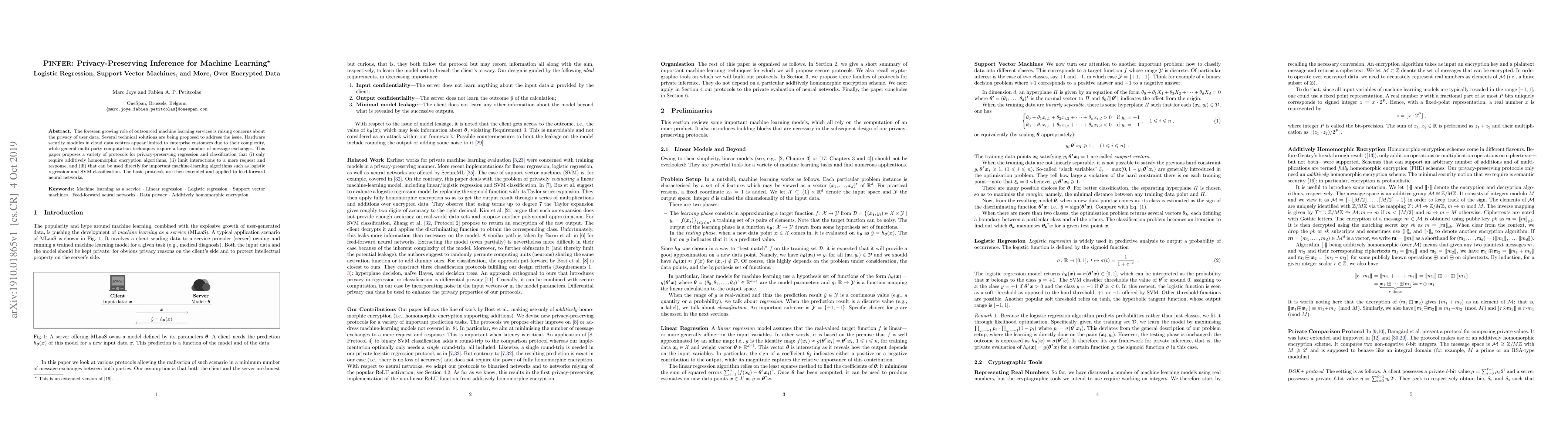 This paper presents protocols for privacy-preserving inference in machine learning using additively homomorphic encryption, requiring minimal interaction and applicable to algorithms like logistic regression and SVM. It extends these protocols to feed-forward neural networks, addressing privacy concerns in outsourced machine learning services.