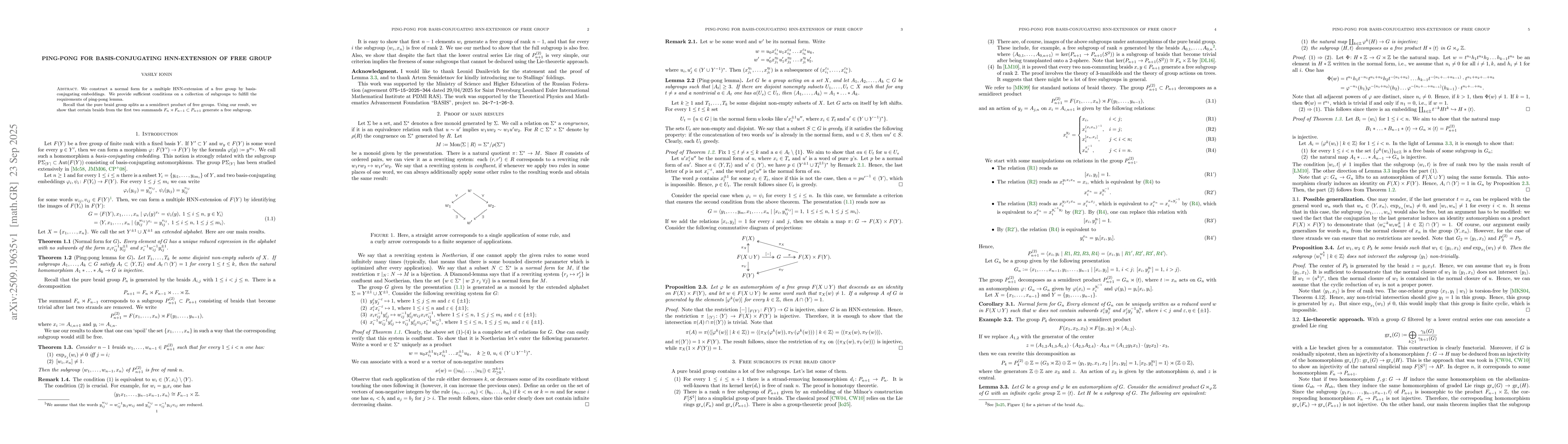 The research constructs a normal form for multiple HNN-extensions of free groups using basis-conjugating embeddings and applies the ping-pong lemma to establish freeness of subgroups. It combines algebraic techniques with rewriting systems and semidirect products.