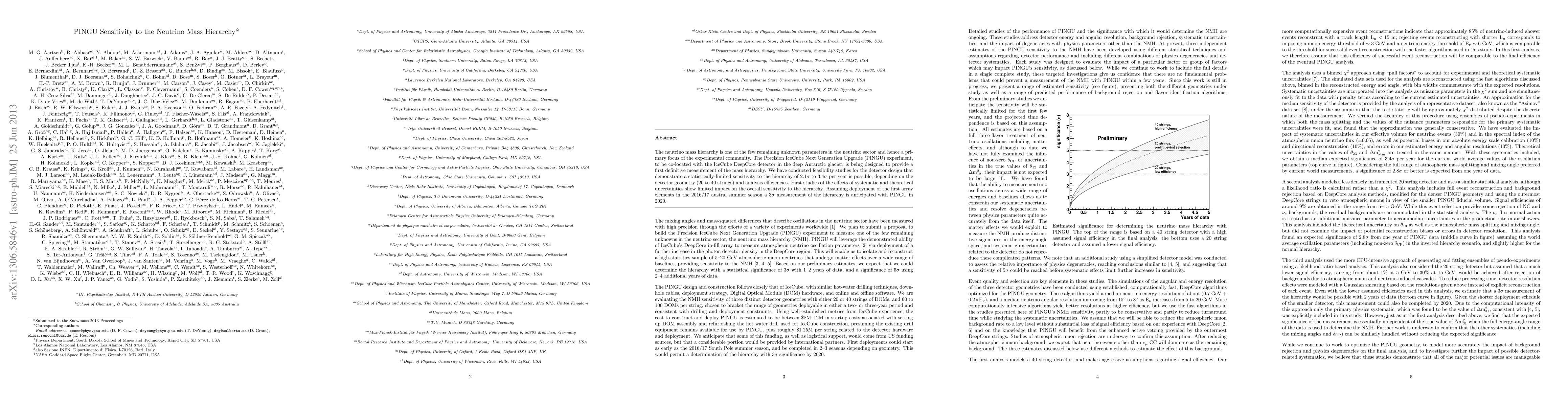 The PINGU experiment aims to determine the neutrino mass hierarchy with a sensitivity of 2.1 to 3.4 sigma per year, depending on design and efficiency. Initial studies indicate minimal impact from systematic and theoretical uncertainties, with a 3 sigma measurement anticipated by 2020.