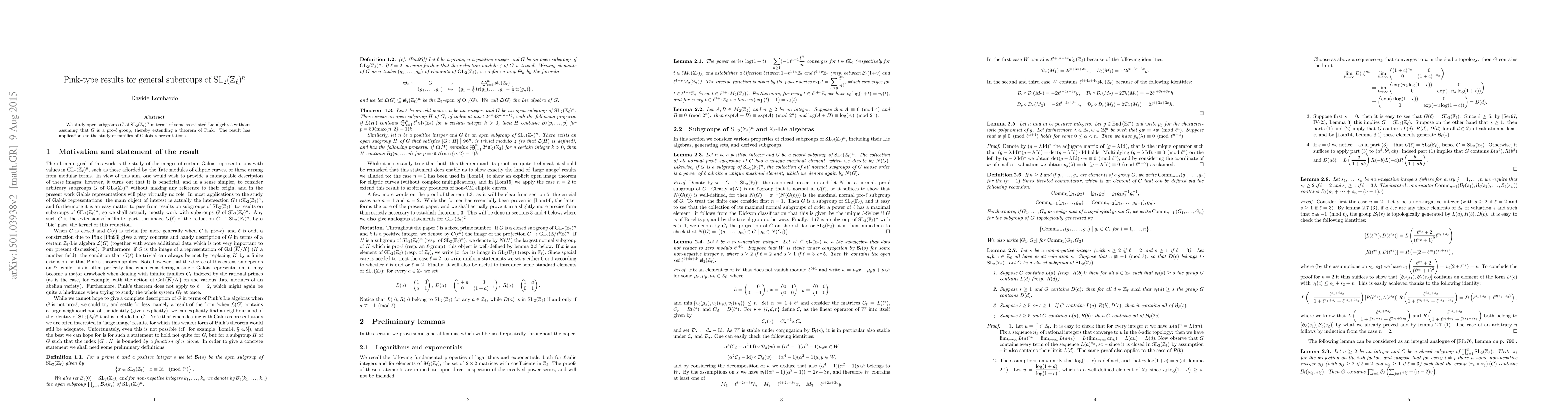 This research extends Pink's theorem to study open subgroups G of SL_2(Z_ell)^n, associated with Lie algebras, without requiring G to be a pro-ell group. The findings impact the examination of Galois representation families.