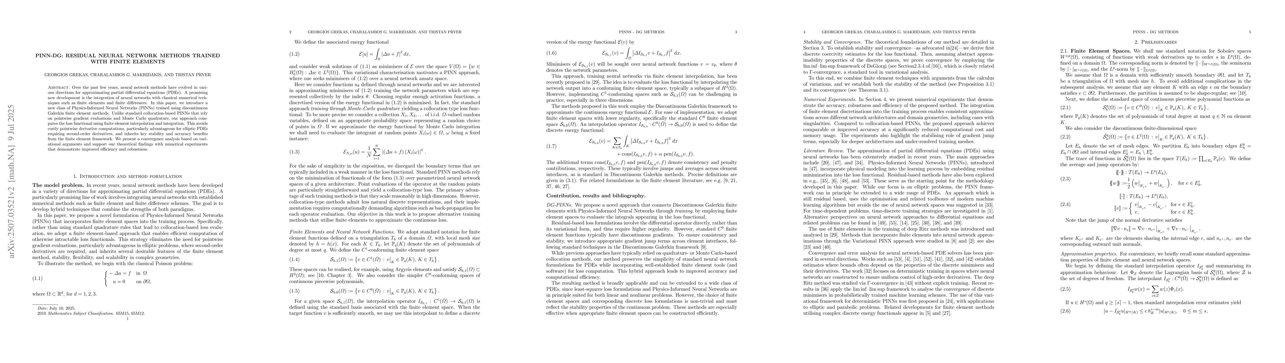 Over the past few years, neural network methods have evolved in various directions for approximating partial differential equations (PDEs). A promising new development is the integration of neural networks with classical numerical techniques such as finite elements and finite differences. In this paper, we introduce a new class of Physics-Informed Neural Networks (PINNs) trained using discontinuous Galerkin finite element methods. Unlike standard collocation-based PINNs that rely on pointwise gradient evaluations and Monte Carlo quadrature, our approach computes the loss functional using finite element interpolation and integration. This avoids costly pointwise derivative computations, particularly advantageous for elliptic PDEs requiring second-order derivatives, and inherits key stability and accuracy benefits from the finite element framework. We present a convergence analysis based on variational arguments and support our theoretical findings with numerical experiments that demonstrate improved efficiency and robustness.
