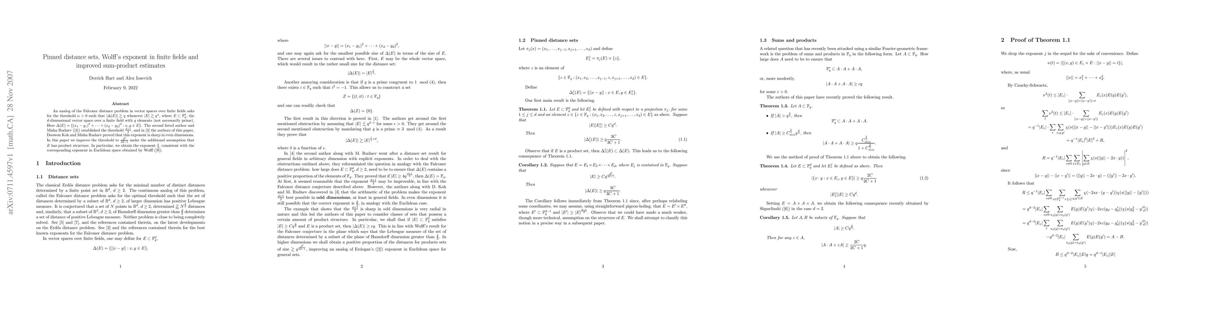 Researchers improved a threshold for how close two subsets of points in a vector space over a finite field can be while ensuring their sum-product estimates remain valid. They found this new threshold to be $rac{d^2}{2d-1}$ under an additional assumption about the subset's structure, with implications for problems like Falconer distance.