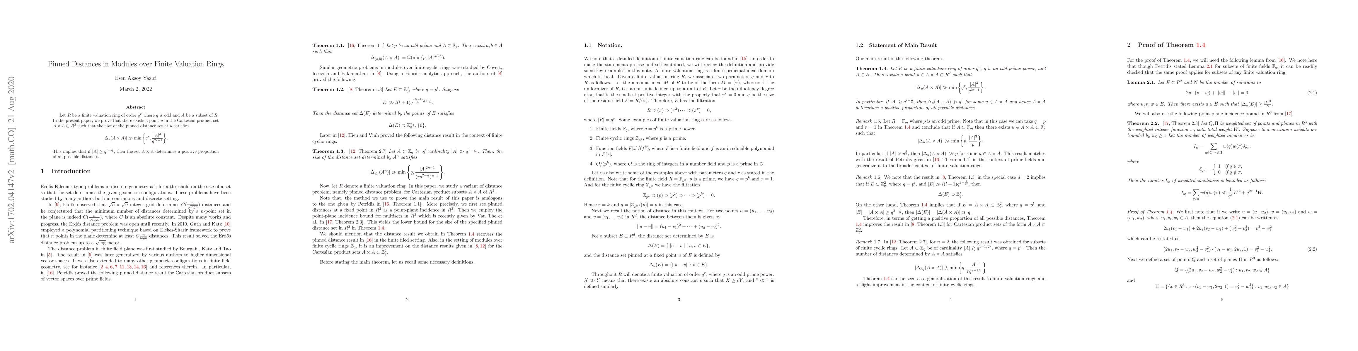 This paper proves the existence of a point in the Cartesian product $A\times A$ of a subset $A$ in a finite valuation ring $R$ such that the pinned distance set at this point significantly exceeds the minimum of $|R|$ and a specific function of $|A|$. It concludes that for sufficiently large $A$, the set $A\times A$ determines a substantial proportion of all possible distances.