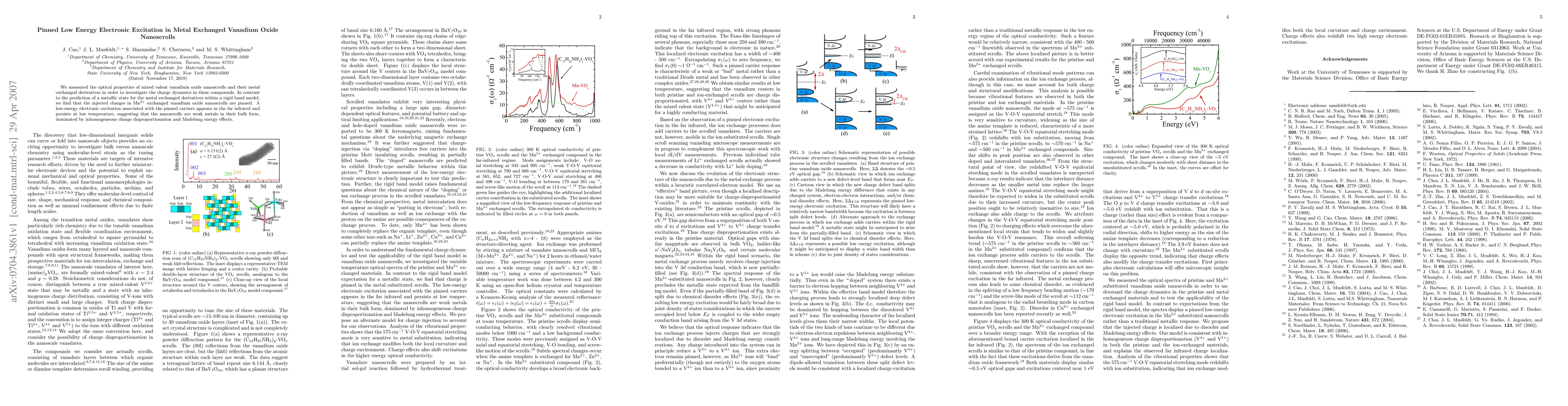 We measured the optical properties of mixed valent vanadium oxide nanoscrolls and their metal exchanged derivatives in order to investigate the charge dynamics in these compounds. In contrast to the prediction of a metallic state for the metal exchanged derivatives within a rigid band model, we find that the injected charges in Mn$^{2+}$ exchanged vanadium oxide nanoscrolls are pinned. A low-energy electronic excitation associated with the pinned carriers appears in the far infrared and persists at low temperature, suggesting that the nanoscrolls are weak metals in their bulk form, dominated by inhomogeneous charge disproportionation and Madelung energy effects.