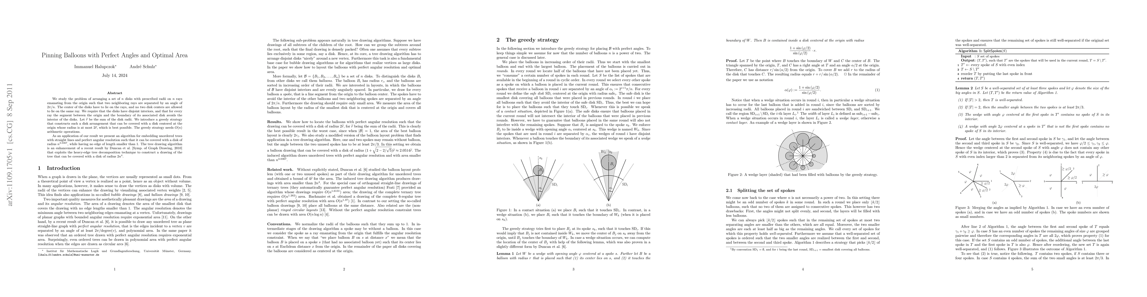We study the problem of arranging a set of $n$ disks with prescribed radii on $n$ rays emanating from the origin such that two neighboring rays are separated by an angle of $2\pi/n$. The center of the disks have to lie on the rays, and no two disk centers are allowed to lie on the same ray. We require that the disks have disjoint interiors, and that for every ray the segment between the origin and the boundary of its associated disk avoids the interior of the disks. Let $\r$ be the sum of the disk radii. We introduce a greedy strategy that constructs such a disk arrangement that can be covered with a disk centered at the origin whose radius is at most $2\r$, which is best possible. The greedy strategy needs O(n) arithmetic operations. As an application of our result we present an algorithm for embedding unordered trees with straight lines and perfect angular resolution such that it can be covered with a disk of radius $n^{3.0367}$, while having no edge of length smaller than 1. The tree drawing algorithm is an enhancement of a recent result by Duncan et al. [Symp. of Graph Drawing, 2010] that exploits the heavy-edge tree decomposition technique to construct a drawing of the tree that can be covered with a disk of radius $2 n^4$.