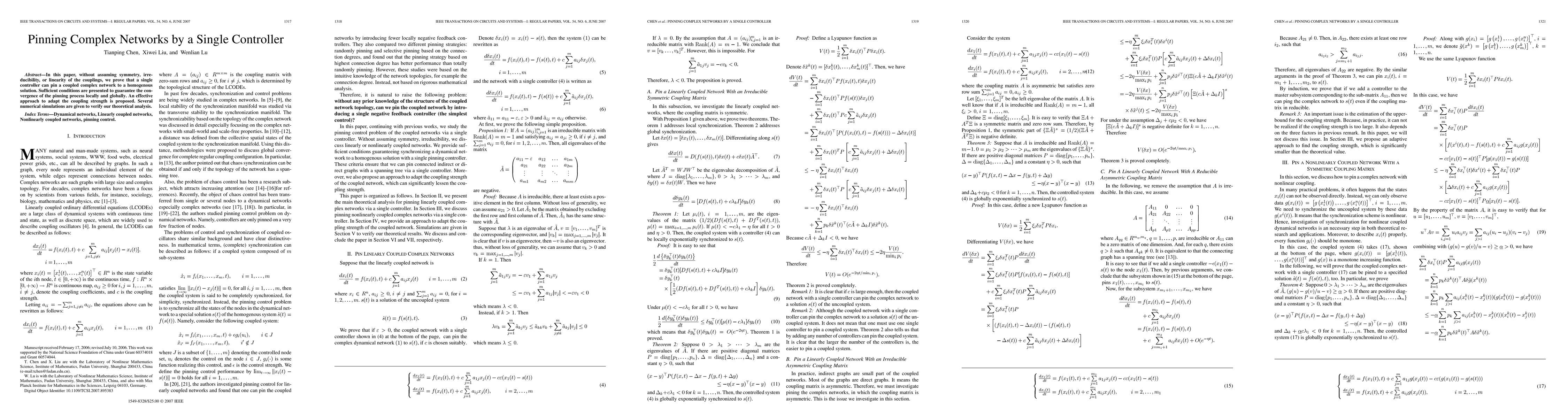 In this paper, without assuming symmetry, irreducibility, or linearity of the couplings, we prove that a single controller can pin a coupled complex network to a homogenous solution. Sufficient conditions are presented to guarantee the convergence of the pinning process locally and globally. An effective approach to adapt the coupling strength is proposed. Several numerical simulations are given to verify our theoretical analysis.