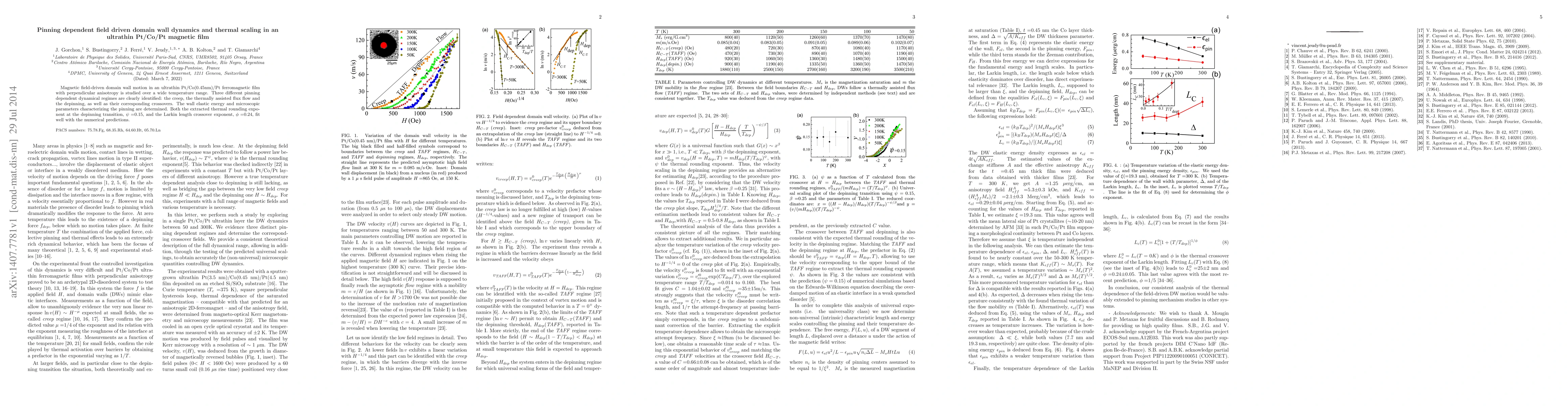 This study investigates the magnetic field-driven domain wall dynamics in an ultrathin Pt/Co/Pt film over a range of temperatures, identifying three pinning-dependent regimes: creep, thermally assisted flux flow, and depinning. The research reveals good agreement between experimental thermal exponents and numerical predictions.