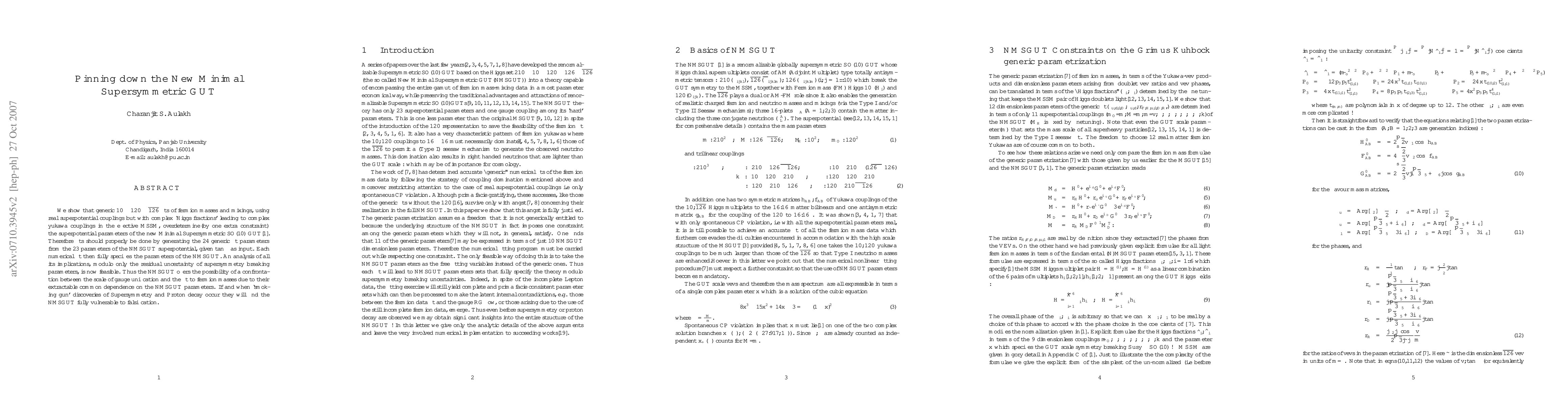 We show that generic $ {\bf{10\oplus 120\oplus {\bar {126}}}}$ fits of fermion masses and mixings, using real superpotential couplings but with complex `Higgs fractions' leading to complex yukawa couplings in the effective MSSM, \emph{overdetermine}(by one extra constraint) the superpotential parameters of the New Minimal Supersymmetric SO(10) GUT\cite{nmsgut}. Therefore fits should properly be done by generating the 24 generic fit parameters from the 23 parameters of the NMSGUT superpotential, given $\tan\beta$ as input. Each numerical fit then \emph{fully specifies} the parameters of the NMSGUT. An analysis of all its implications, modulo only the residual uncertainty of supersymmetry breaking parameters, is now feasible. Thus the NMSGUT offers the possibility of a confrontation between the scale of gauge unification and the fit to fermion masses due to their extractable common dependence on the NMSGUT parameters. If and when `smoking gun' discoveries of Supersymmetry and Proton decay occur they will find the NMSGUT fully vulnerable to falsification.