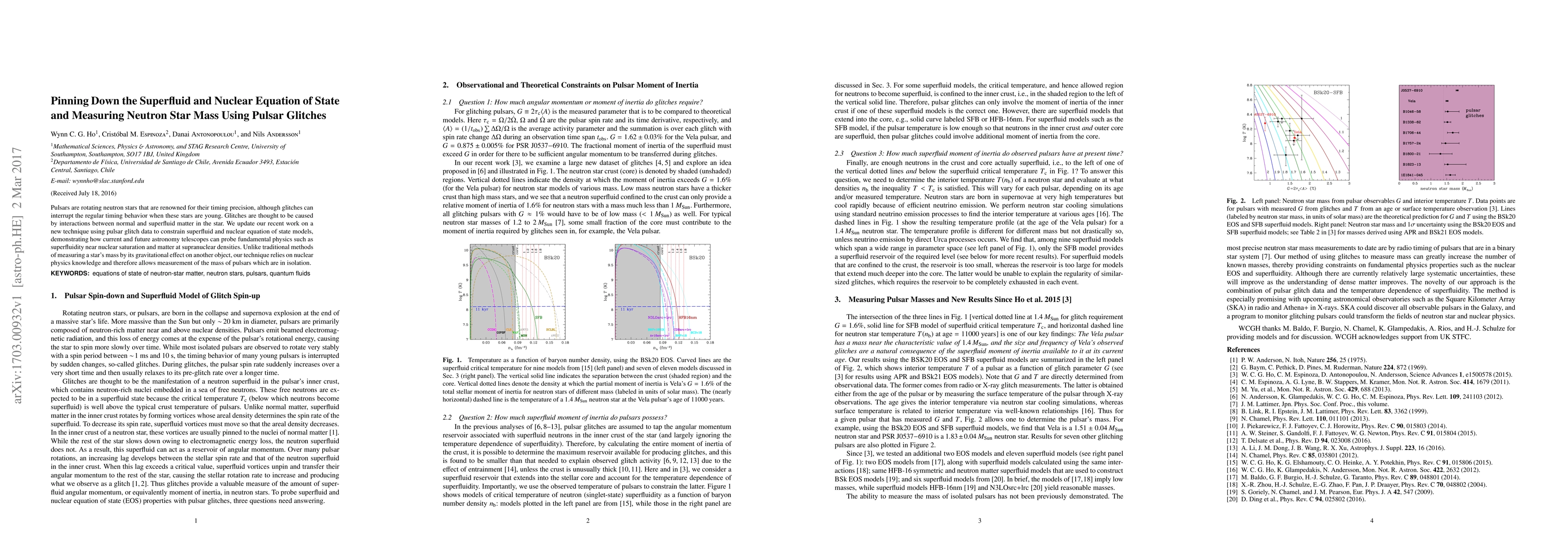 Pulsars are rotating neutron stars that are renowned for their timing precision, although glitches can interrupt the regular timing behavior when these stars are young. Glitches are thought to be caused by interactions between normal and superfluid matter in the star. We update our recent work on a new technique using pulsar glitch data to constrain superfluid and nuclear equation of state models, demonstrating how current and future astronomy telescopes can probe fundamental physics such as superfluidity near nuclear saturation and matter at supranuclear densities. Unlike traditional methods of measuring a star's mass by its gravitational effect on another object, our technique relies on nuclear physics knowledge and therefore allows measurement of the mass of pulsars which are in isolation.