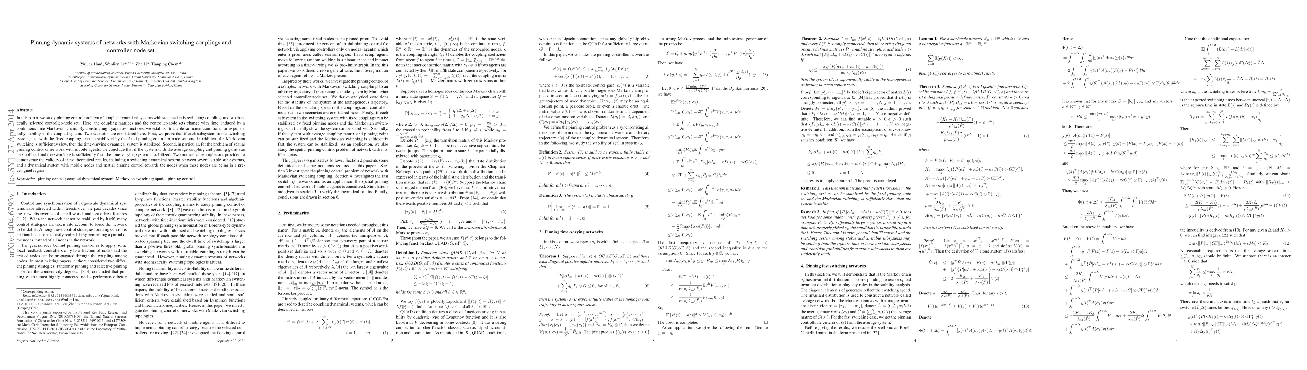 This paper investigates pinning control for dynamical systems with Markovian switching couplings and a stochastically selected controller-node set. It establishes sufficient conditions for exponential stability using Lyapunov functions, showing that slow switching can stabilize the system if each subsystem can be stabilized with a fixed controller, while fast switching can achieve stabilization under average coupling and pinning gains.