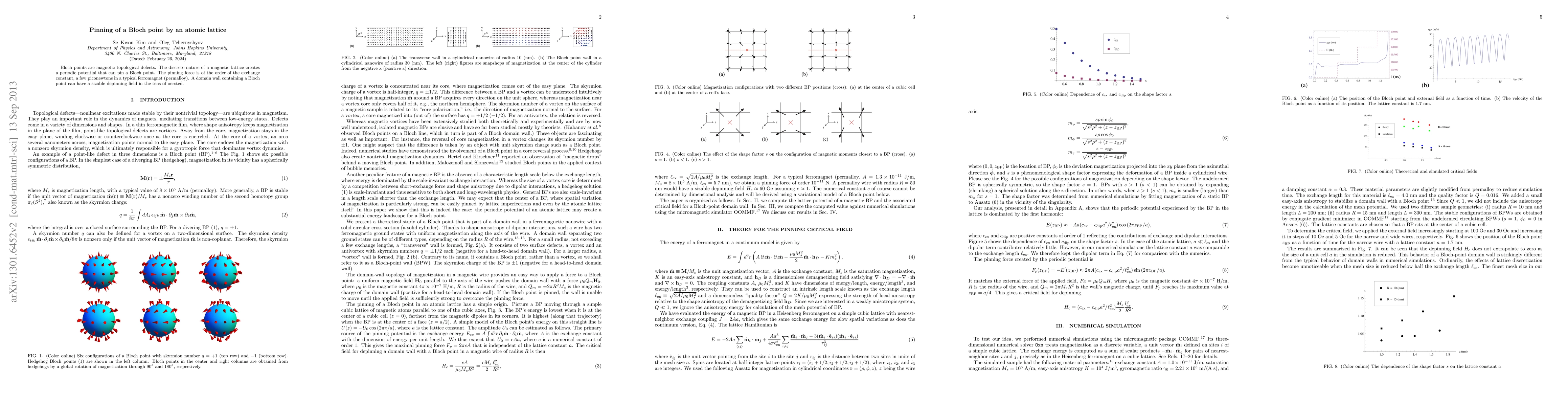 Bloch points are magnetic topological defects. The discrete nature of a magnetic lattice creates a periodic potential that can pin a Bloch point. The pinning force is of the order of the exchange constant, a few piconewtons in a typical ferromagnet (permalloy). A domain wall containing a Bloch point can have a sizable depinning field in the tens of oersted.
