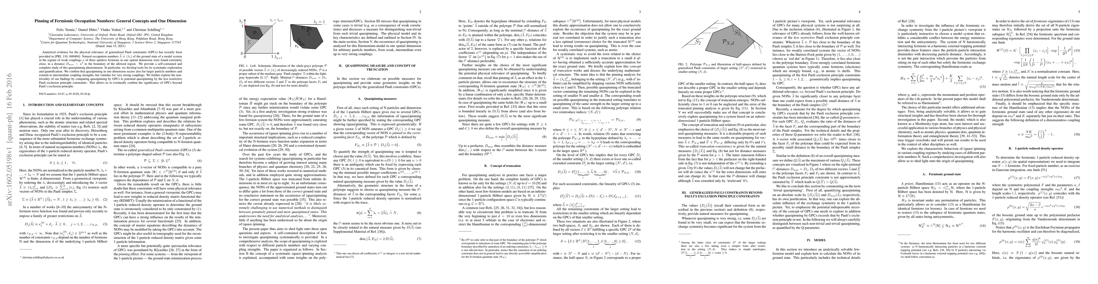 Analytical evidence for the physical relevance of generalized Pauli constraints (GPCs) has recently been provided in [PRL 110, 040404]: Natural occupation numbers $\vec{\lambda}\equiv (\lambda_i)$ of the ground state of a model system in the regime of weak couplings $\kappa$ of three spinless fermions in one spatial dimension were found extremely close, in a distance $D_{min}\sim \kappa^8$ to the boundary of the allowed region. We provide a self-contained and complete study of this quasipinning phenomenon. In particular, we develop tools for its systematic exploration and quantification. We confirm that quasipinning in one dimension occurs also for larger particle numbers and extends to intermediate coupling strengths, but vanishes for very strong couplings. We further explore the non-triviality of our findings by comparing quasipinning by GPCs to potential quasipinning by the less restrictive Pauli exclusion principle constraints. This allows us to eventually confirm the significance of GPCs beyond Pauli's exclusion principle.