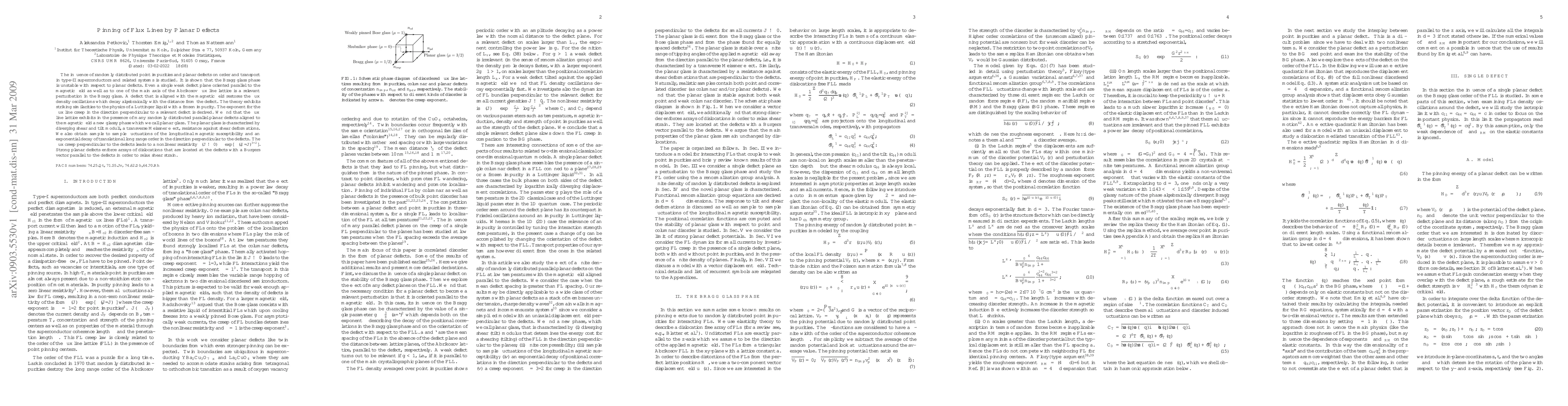 This study explores how planar defects and point impurities affect order and transport in type-II superconductors, revealing that planar defects can induce a new "planar glass" phase. The presence of aligned defects leads to flux density oscillations and flux creep, resulting in nonlinear resistivity and significant shear and tilt modulus divergence.