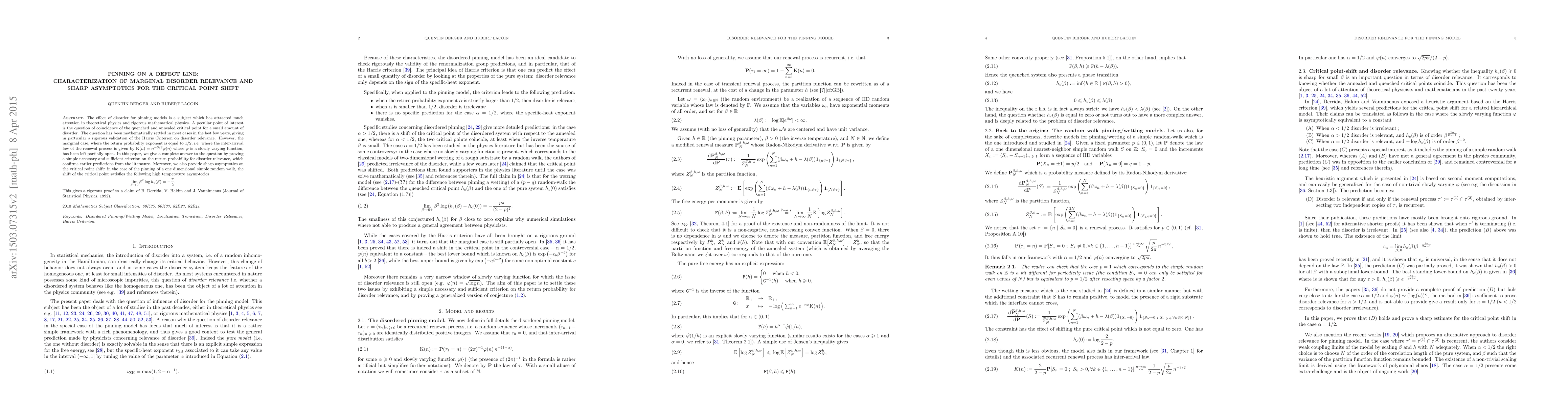 This paper addresses the relevance and sharp asymptotics of marginal disorder in pinning models, providing a complete criterion for disorder relevance and proving the high-temperature asymptotics for the critical point shift, confirming earlier predictions and rigorously validating a claim by Derrida, Hakim, and Vannimenus.