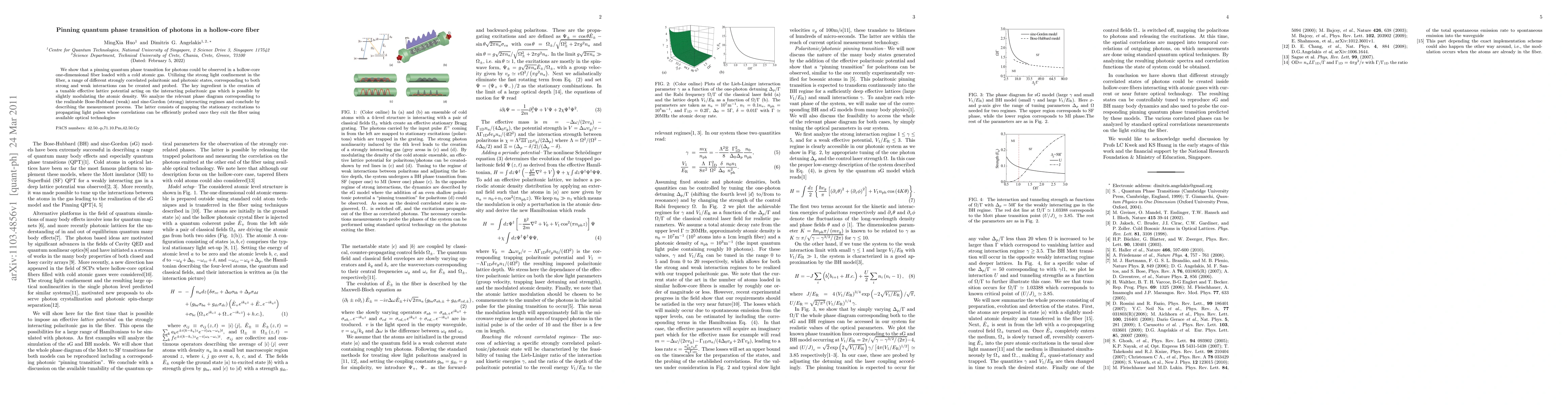 The paper presents a novel method for creating and controlling strongly correlated photonic states using a hollow-core fiber with a cold atomic gas, demonstrating a pinning quantum phase transition for photons.