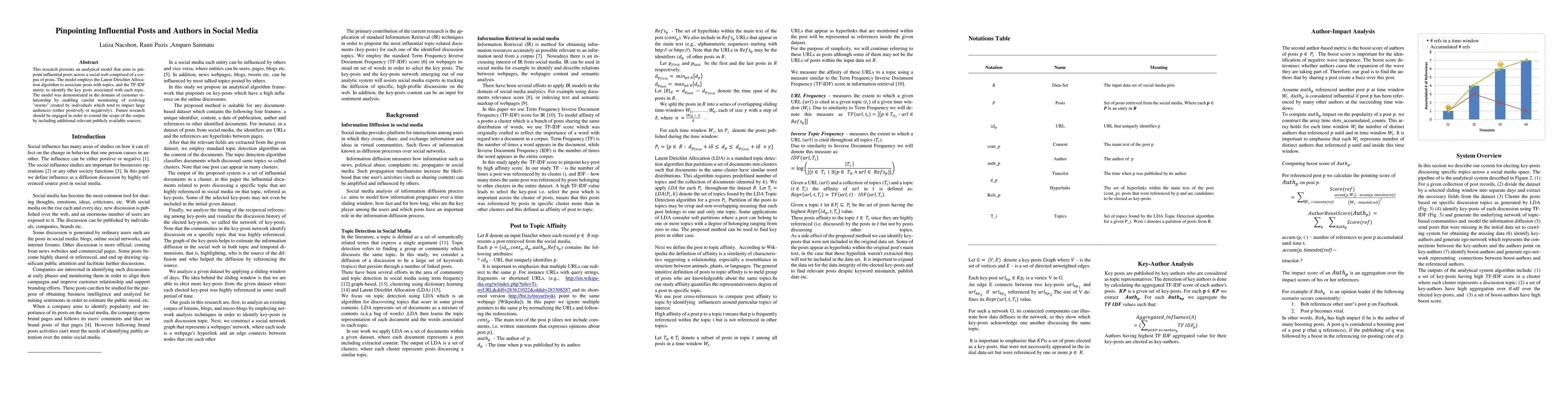 This research presents an analytical model that aims to pin-point influential posts across a social web comprised of a corpus of posts. The model employs the Latent Dirichlet Al-location algorithm to associate posts with topics, and the TF-IDF metric to identify the key posts associated with each top-ic. The model was demonstrated in the domain of customer relationship by enabling careful monitoring of evolving "storms" created by individuals which tend to impact large audiences (either positively or negatively). Future research should be engaged in order to extend the scope of the corpus by including additional relevant publicly available sources.