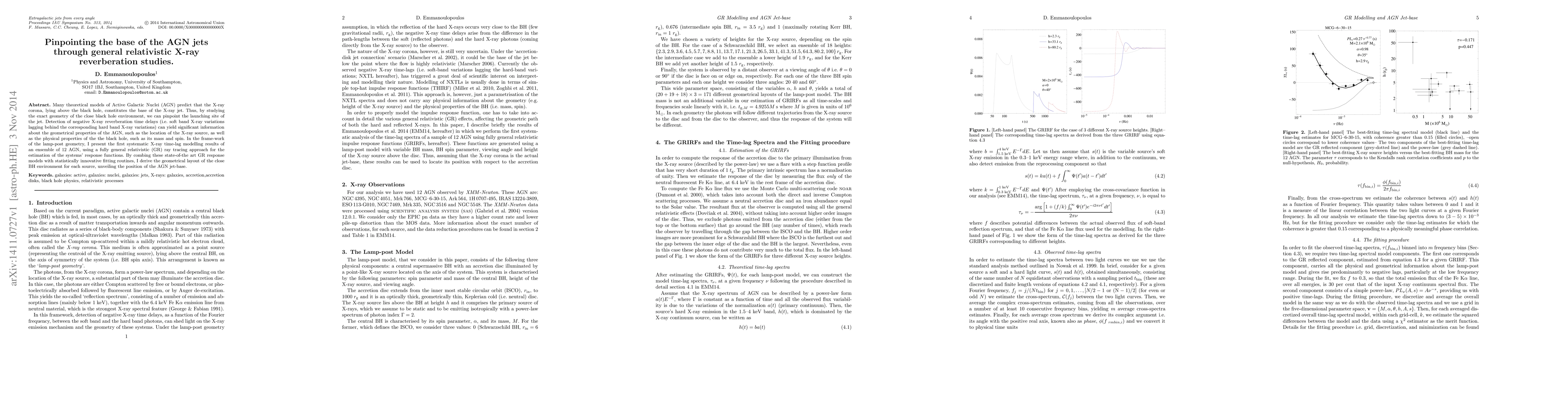 Many theoretical models of Active Galactic Nuclei (AGN) predict that the X-ray corona, lying above the black hole, constitutes the base of the X-ray jet. Thus, by studying the exact geometry of the close black hole environment, we can pinpoint the launching site of the jet. Detection of negative X-ray reverberation time delays (i.e. soft band X-ray variations lagging behind the corresponding hard band X-ray variations) can yield significant information about the geometrical properties of the AGN, such as the location of the X-ray source, as well as the physical properties of the the black hole, such as its mass and spin. In the frame-work of the lamp-post geometry, I present the first systematic X-ray time-lag modelling results of an ensemble of 12 AGN, using a fully general relativistic (GR) ray tracing approach for the estimation of the systems' response functions. By combing these state-of-the art GR response models with statistically innovative fitting routines, I derive the geometrical layout of the close BH environment for each source, unveiling the position of the AGN jet-base.