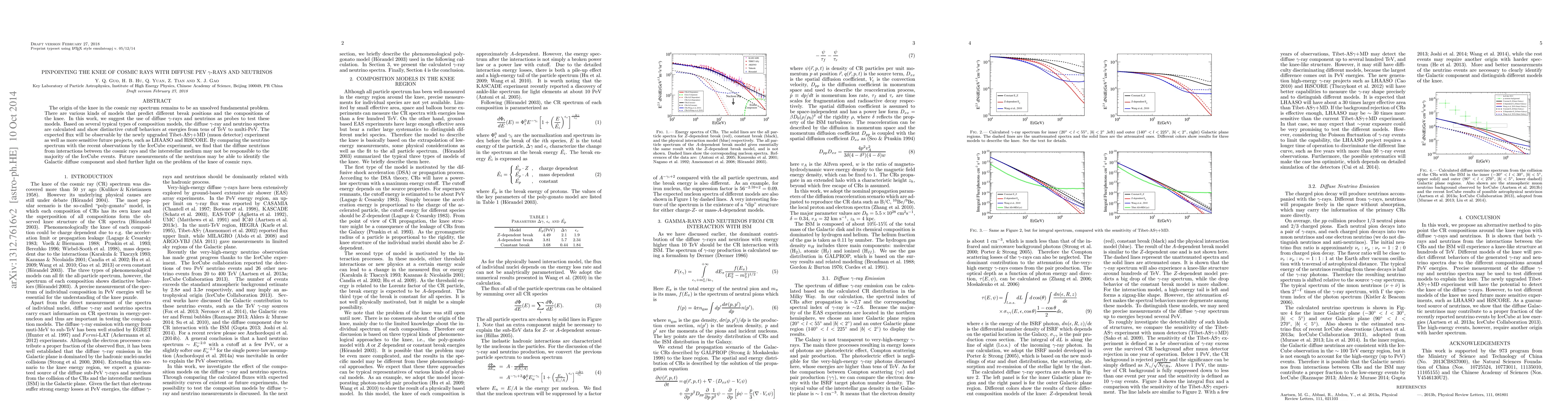 This paper proposes using diffuse PeV gamma-rays and neutrinos to investigate the origin of the cosmic ray knee, finding distinctive cutoff behaviors in their spectra. Future observations by Tibet-AS$\gamma$+MD, LHAASO, and HiSCORE may identify the Galactic diffuse component, potentially resolving the cosmic ray knee mystery.