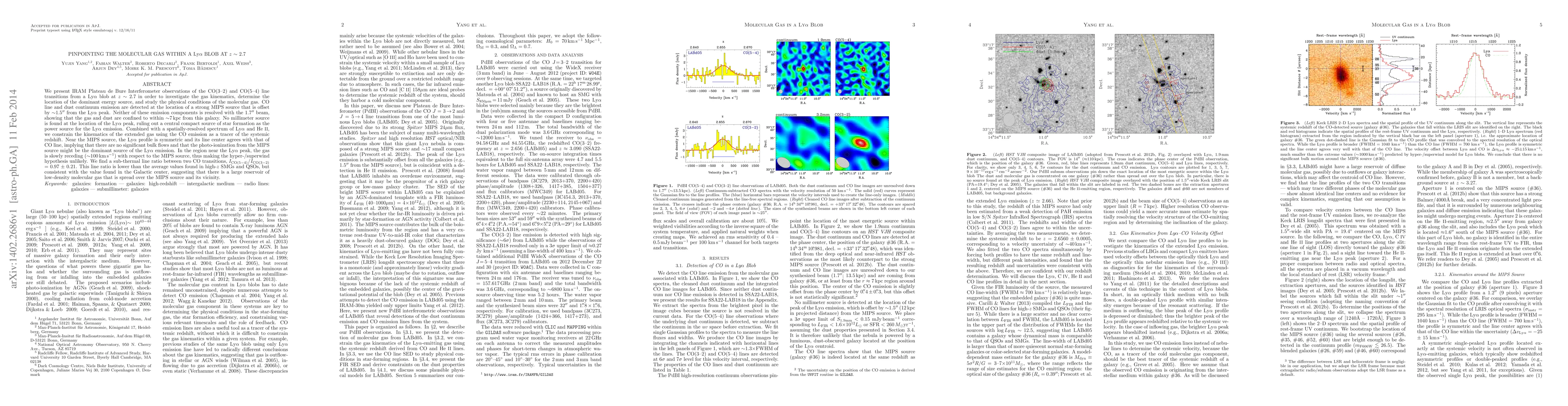 Astronomers studied a Lyman Alpha Blob at z ~ 2.7 using CO(3-2) and CO(5-4) line transitions to investigate molecular gas kinematics and physical conditions. The findings suggest the gas is slowly receding, ruling out hyper-/superwind hypothesis.