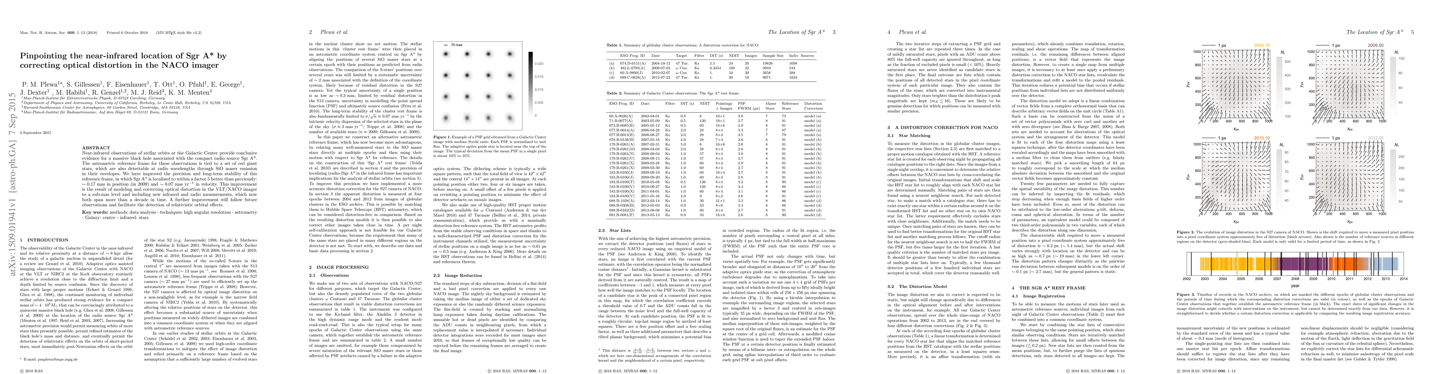 Near-infrared observations of stellar orbits at the Galactic Center provide conclusive evidence for a massive black hole associated with the compact radio source Sgr A*. The astrometric reference frame for these observations is tied to a set of red giant stars, which are also detectable at radio wavelengths through SiO maser emission in their envelopes. We have improved the precision and long-term stability of this reference frame, in which Sgr A* is localized to within a factor 5 better than previously: ~0.17 mas in position (in 2009) and ~0.07 mas/yr in velocity. This improvement is the result of modeling and correcting optical distortion in the VLT/NACO imager to a sub-mas level and including new infrared and radio measurements, which now both span more than a decade in time. A further improvement will follow future observations and facilitate the detection of relativistic orbital effects.