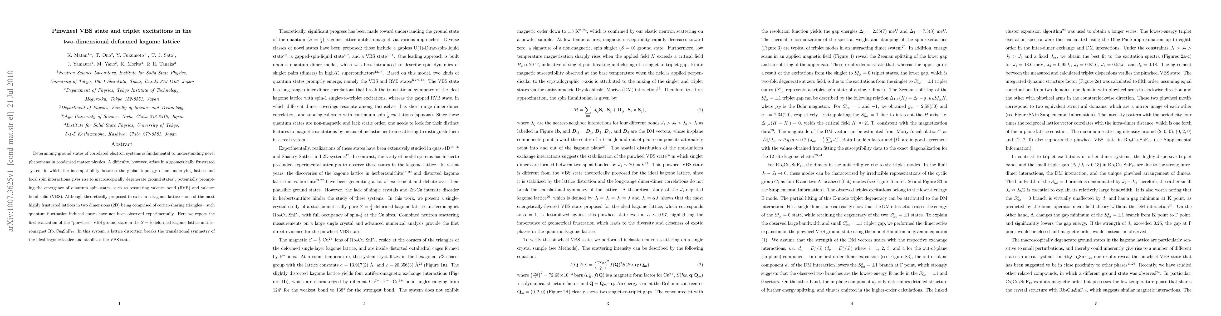 This paper reports the first experimental observation of the "pinwheel" valence bond solid (VBS) ground state in the S=1/2 deformed kagome lattice antiferromagnet Rb2Cu3SnF12, where lattice distortion stabilizes the VBS state, addressing the challenges of geometrically frustrated systems in condensed matter physics.