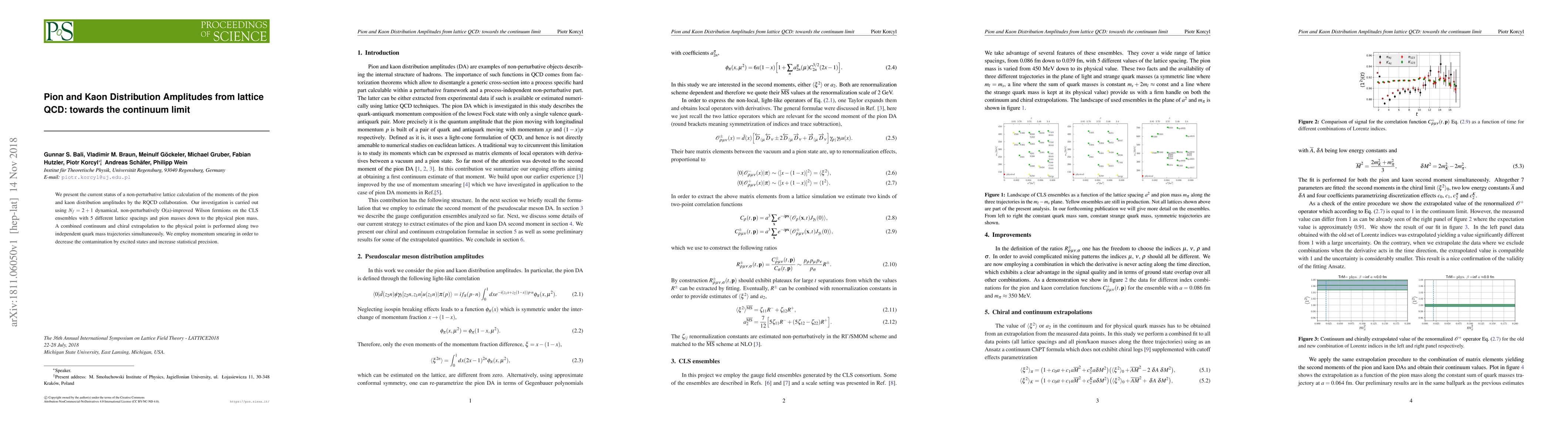 This paper reports on lattice QCD calculations of pion and kaon distribution amplitudes using $N_f=2+1$ dynamical fermions across five lattice spacings. The study employs a continuum and chiral extrapolation to achieve results at the physical point, utilizing momentum smearing to enhance precision.