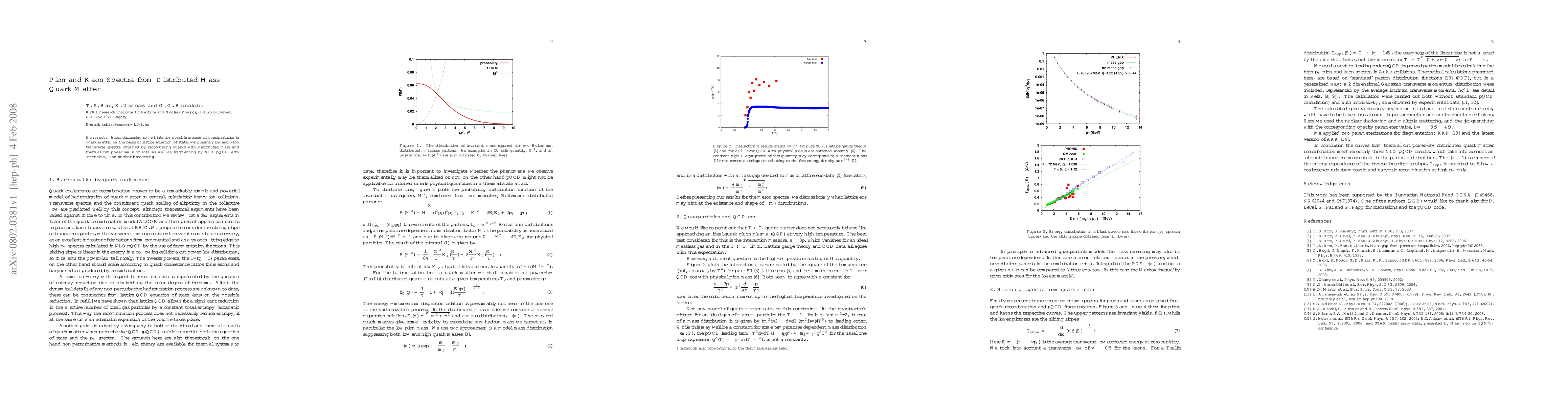After discussing some hints for possible masses of quasiparticles in quark matter on the basis of lattice equation of state, we present pion and kaon transverse spectra obtained by recombining quarks with distributed mass and thermal cut power-law momenta as well as fragmenting by NLO pQCD with intrinsic $k_T$ {and nuclear} broadening.