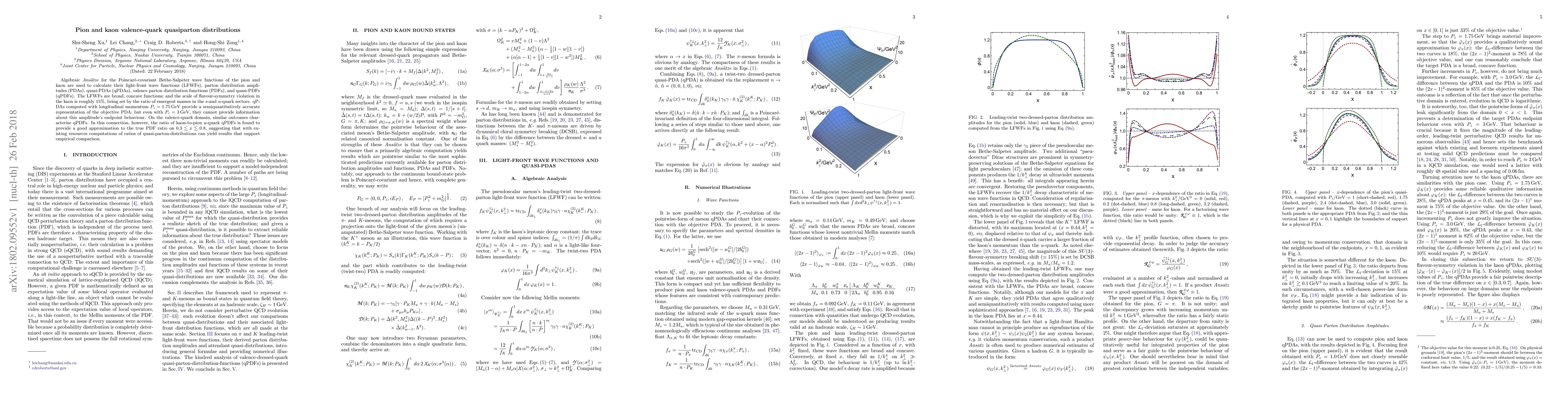Algebraic Ansaetze for the Poincar\'e-covariant Bethe-Salpeter wave functions of the pion and kaon are used to calculate their light-front wave functions (LFWFs), parton distribution amplitudes (PDAs), quasi-PDAs (qPDAs), valence parton distribution functions (PDFs), and quasi-PDFs (qPDFs). The LFWFs are broad, concave functions; and the scale of flavour-symmetry violation in the kaon is roughly 15%, being set by the ratio of emergent masses in the $s$-and $u$-quark sectors. qPDAs computed with longitudinal momentum $P_z =1.75\,$GeV provide a semiquantitatively accurate representation of the objective PDA; but even with $P_z=3\,$GeV, they cannot provide information about this amplitude's endpoint behaviour. On the valence-quark domain, similar outcomes characterise qPDFs. In this connection, however, the ratio of kaon-to-pion $u$-quark qPDFs is found to provide a good approximation to the true PDF ratio on $0.3\lesssim x \lesssim 0.8$, suggesting that with existing resources computations of ratios of quasi-parton-distributions can yield results that support empirical comparison.
