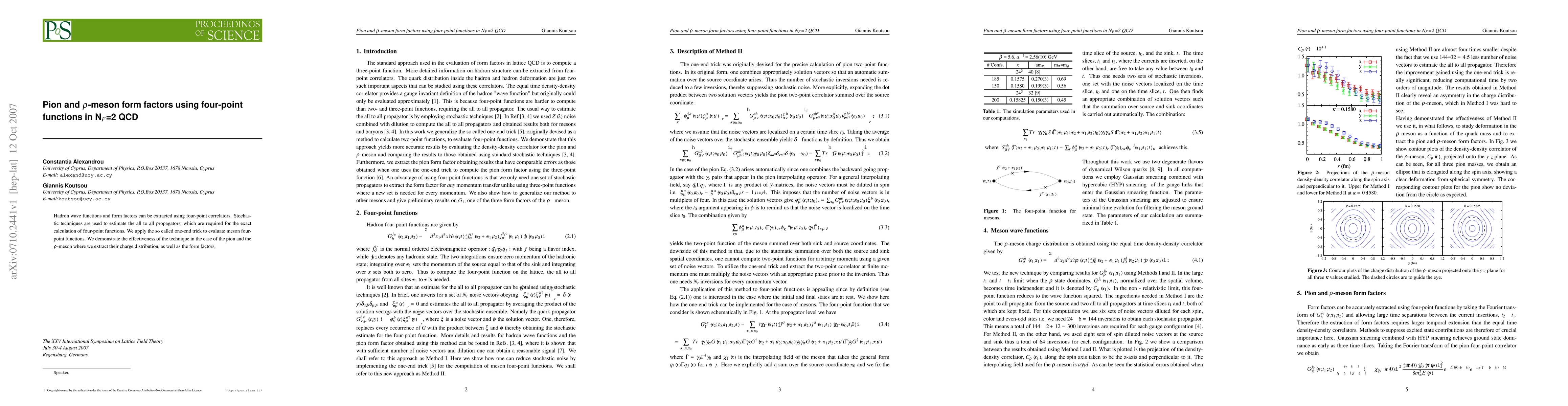 Hadron wave functions and form factors can be extracted using four-point correlators. Stochastic techniques are used to estimate the all to all propagators, which are required for the exact calculation of four-point functions. We apply the so called one-end trick to evaluate meson four-point functions. We demonstrate the effectiveness of the technique in the case of the pion and the $\rho$-meson where we extract their charge distribution, as well as the form factors.