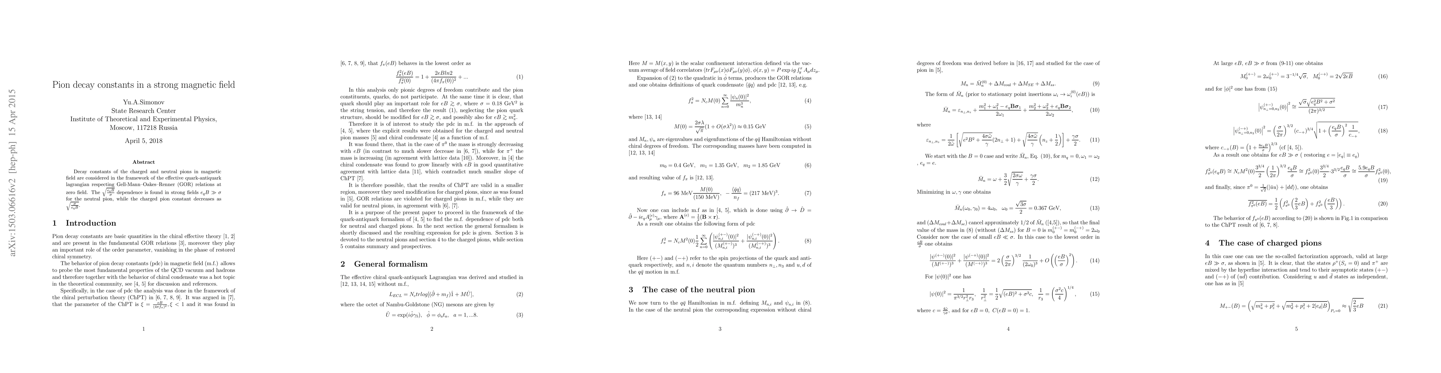 Research investigates how strong magnetic fields affect pion decay constants, finding a non-zero dependence on the field strength for neutral pions and an inverse dependence for charged pions.