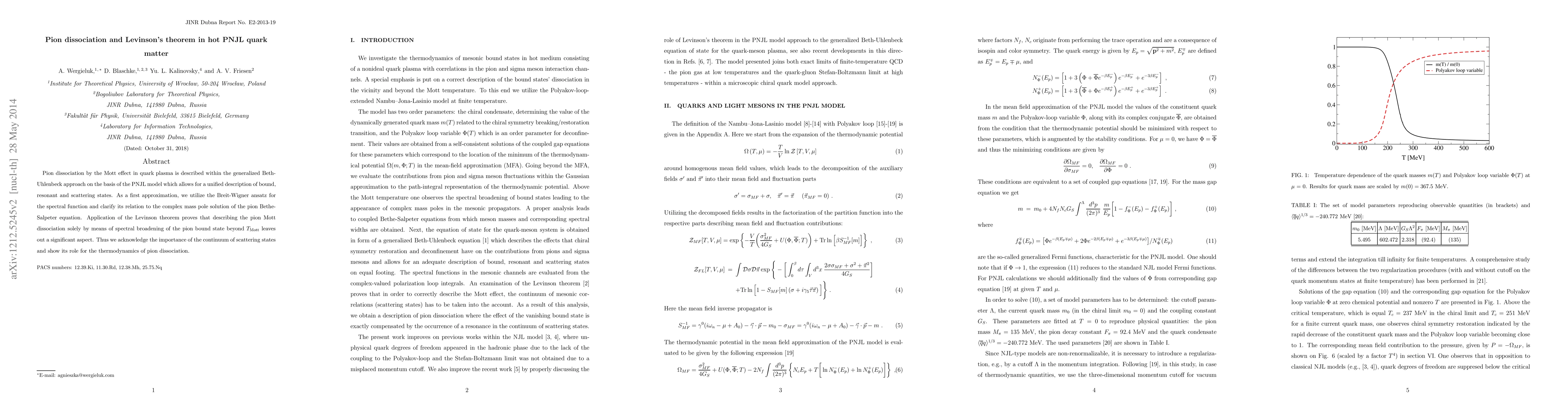 This paper investigates pion dissociation in quark plasma using the PNJL model and the generalized Beth-Uhlenbeck approach, highlighting the significance of scattering states beyond T_Mott. The study applies Levinson's theorem to demonstrate that spectral broadening alone is insufficient, underscoring the importance of the continuum of scattering states for accurate thermodynamic description.