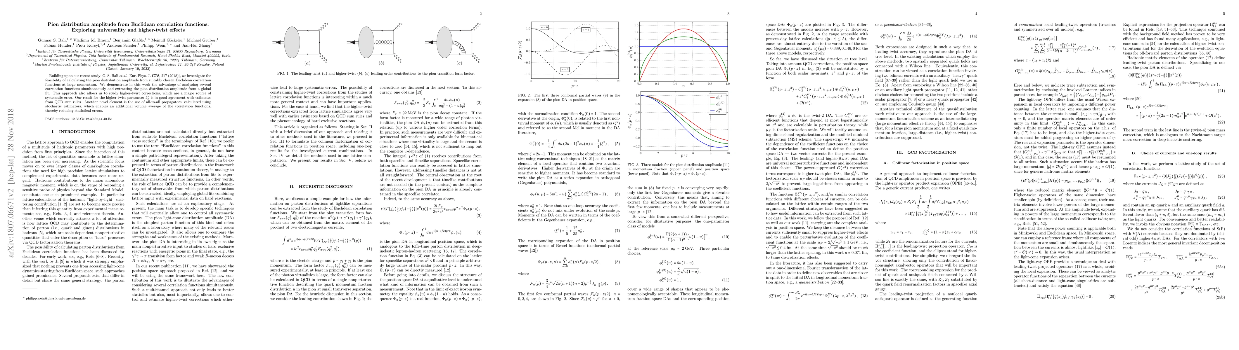 This paper investigates the pion distribution amplitude using Euclidean correlation functions at high momentum, employing a global fit to extract the amplitude from multiple correlation functions. The study also examines higher-twist corrections and finds the higher-twist parameter $\delta^\pi_2$ in agreement with QCD sum rule estimates, while using stochastic estimators to reduce statistical errors.