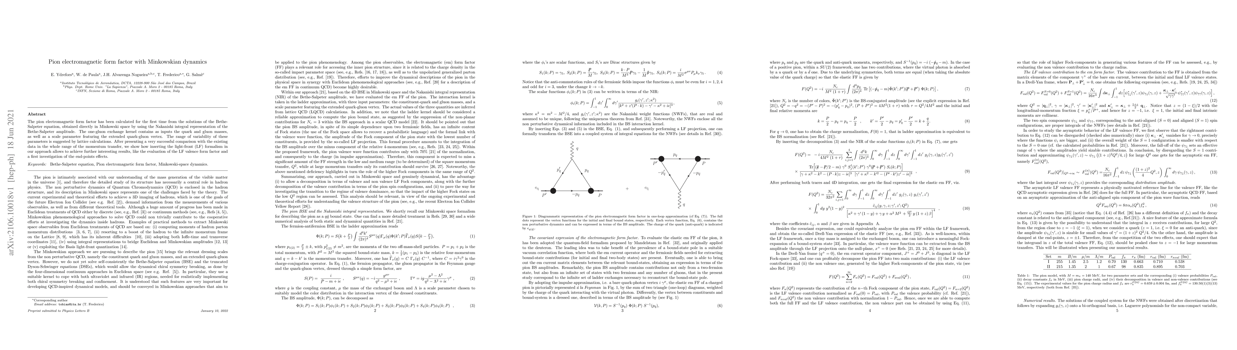 This research calculates the pion electromagnetic form factor for the first time directly in Minkowski space using the Bethe-Salpeter equation and Nakanishi representation. It successfully compares with existing data, and further explores light-front formalism to evaluate the LF valence form factor and investigate end-points effects, with inputs derived from lattice calculations.
