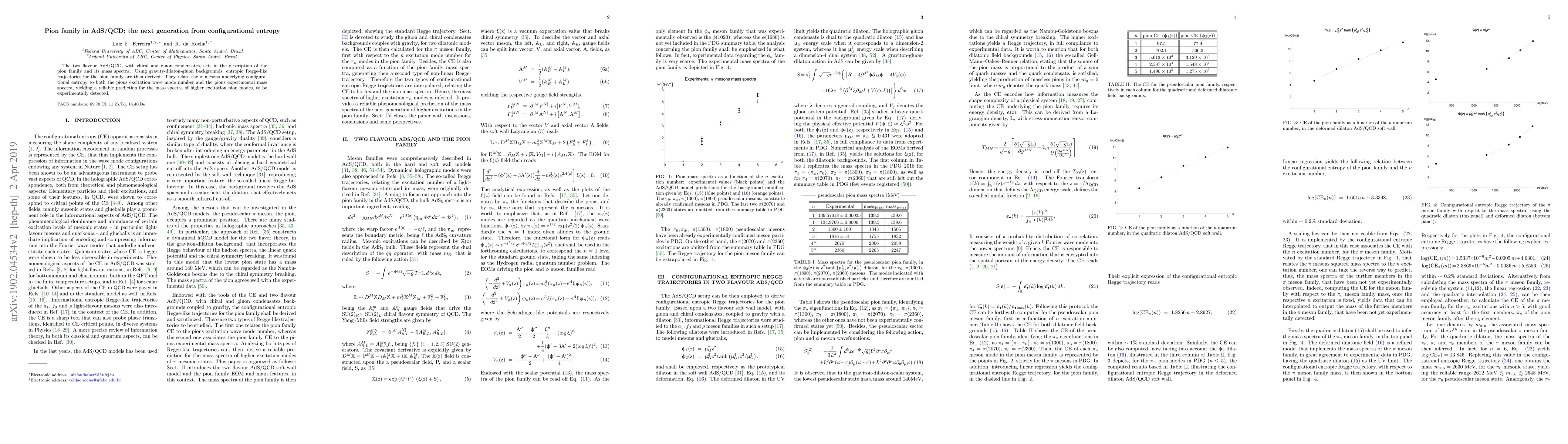This paper explores the pion family in two-flavor AdS/QCD with chiral and gluon condensates, deriving entropic Regge-like trajectories that link pion configurational entropy to their excitation modes and experimental mass spectra, predicting higher excitation pion modes.